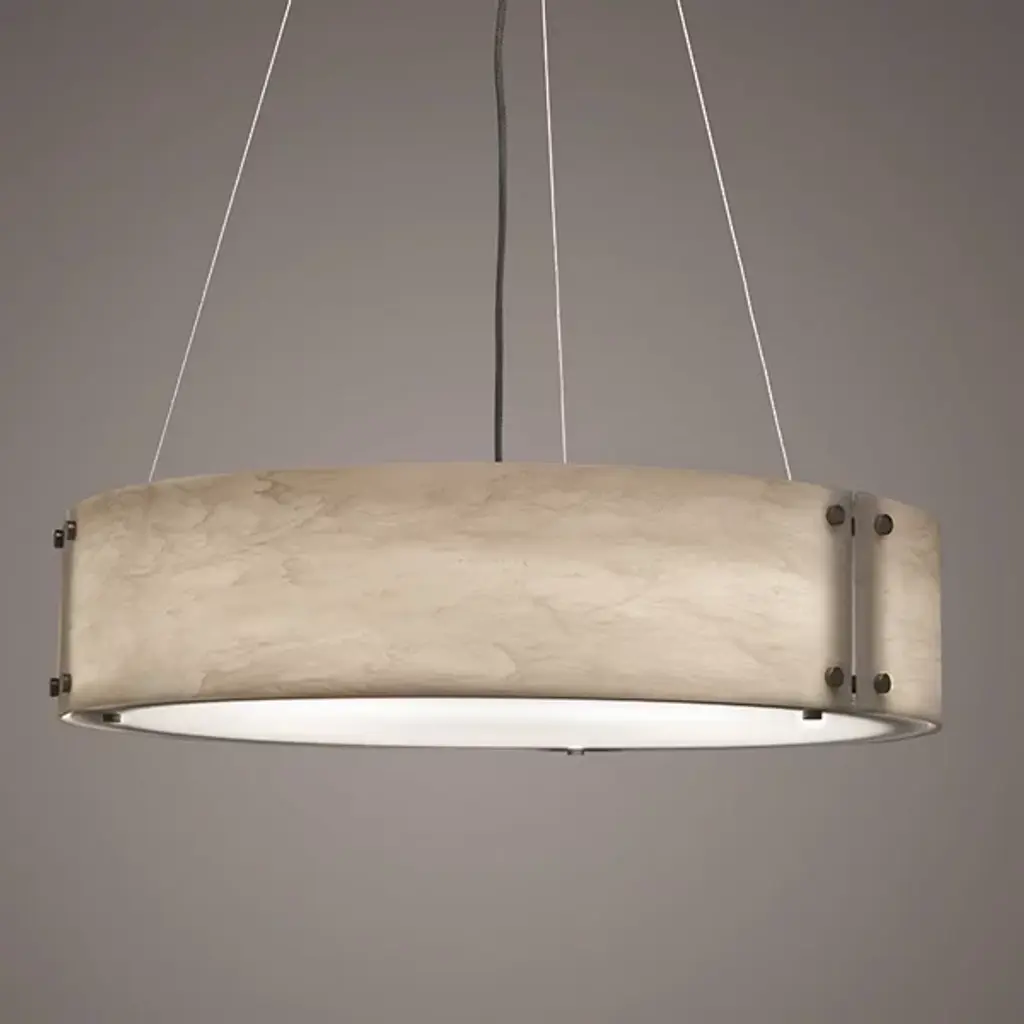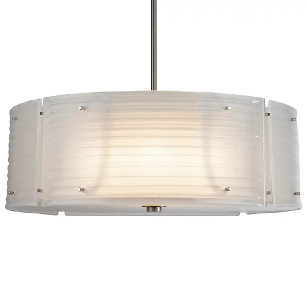 The Ultralights Invicta 16358 Drum Pendant is a simple piece that features a single drum shape that dispenses illumination. Panels of colored acrylic are centered around the opal acrylic diffuser, secured with visible hardware that give the piece a slight industrial vibe. Streamlined and modern, this light option will illuminate your space with a splash of color.