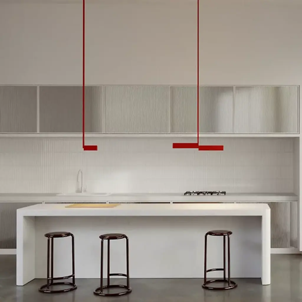 Inspired by classic work lamps and streamlined office lighting, the Ipoli Ipoli IPO04 LED Mini Pendant from Lambert & Fils brings a mix of functional elegance to modern spaces. Designed by Samuel Lambert, this pendant features a single curved aluminum head mounted at the end of a slender vertical stem. The head pivots 330 degrees to direct light where it’s needed—downward for tasks or outward and upward for ambiance. A frosted opal acrylic diffuser softens the energy-efficient LED glow, while a built-in touch dimmer offers precise control easily adjusted to match the mood or meet changing needs.