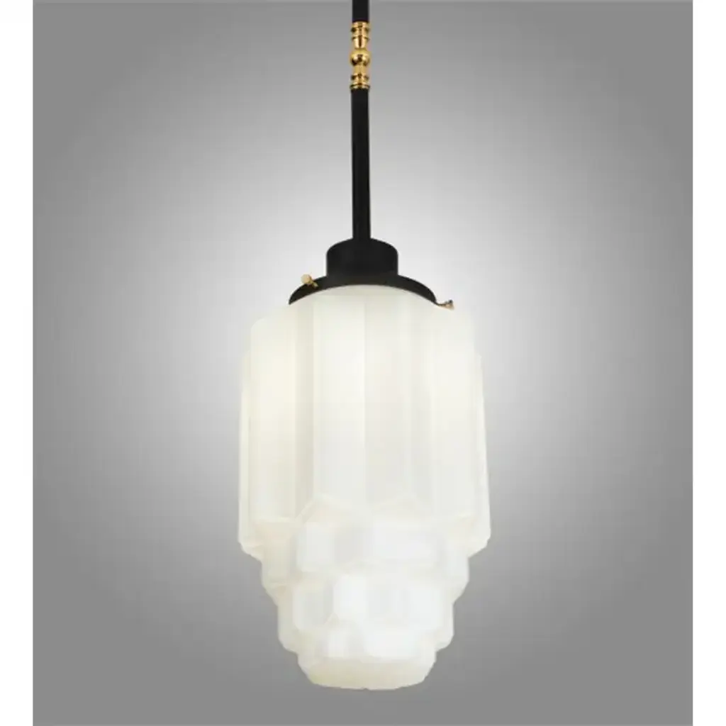 Abstracted from chinese carvings and porcelains, our elegant iris lantern-like pendant celebrates this symbol for happiness on all 4 sides. In antique brass and off-white linen. Barry suggests using this alone or in multiples of matching or varying heights. Additional pipe available (pipe-132). Also available as sconce (ds49008). Damp-rated, although limited covered outdoor conditions may affect finish.