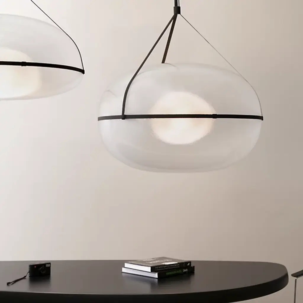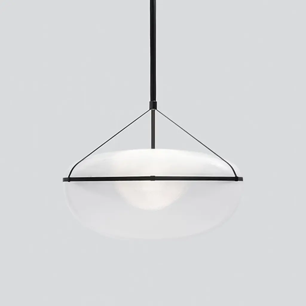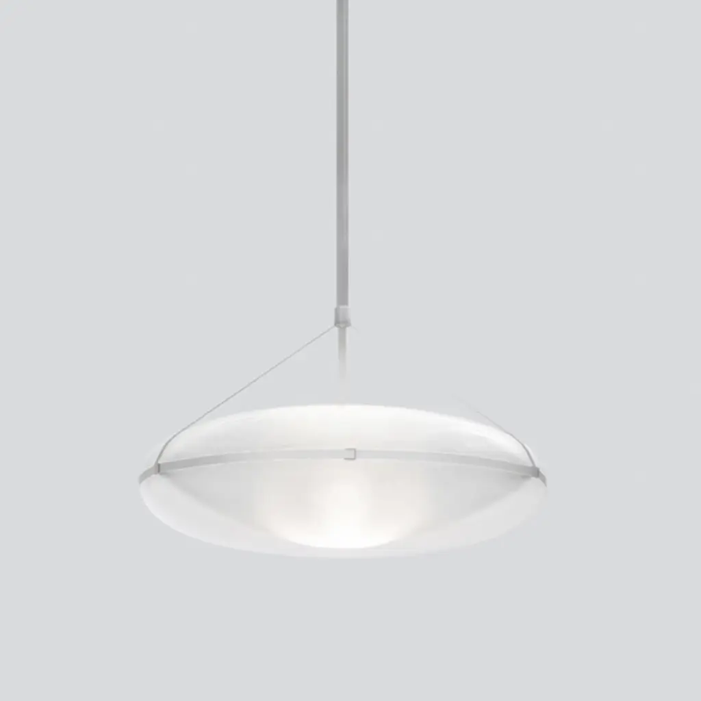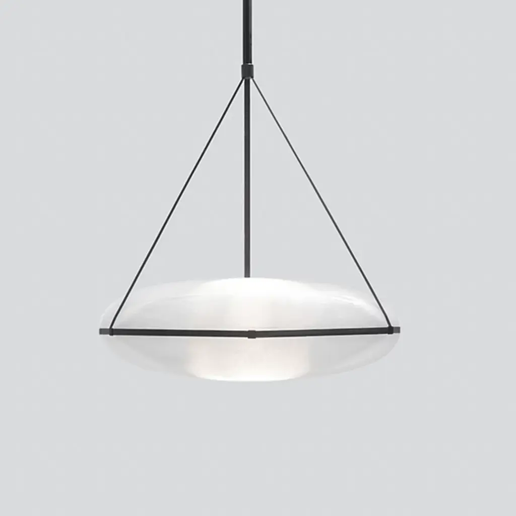 Transform your interiors with the ephemeral and elegant lines of the Iris LED Pendant from A-N-D. An enigmatic design from the mind of Caine Heintzman, it descends from a circular canopy via a slim, strong aluminum stem and curving bracing, supporting bright and energy-friendly lamping inside a voluminous acrylic shade, the captivating elliptical shape transmitting a hazy, opulent warmth to all sides, transforming its surroundings with an elegant, expressive visual lightness matched with a vibrant character.