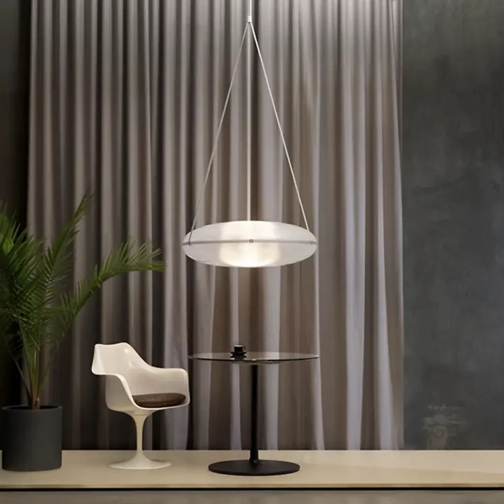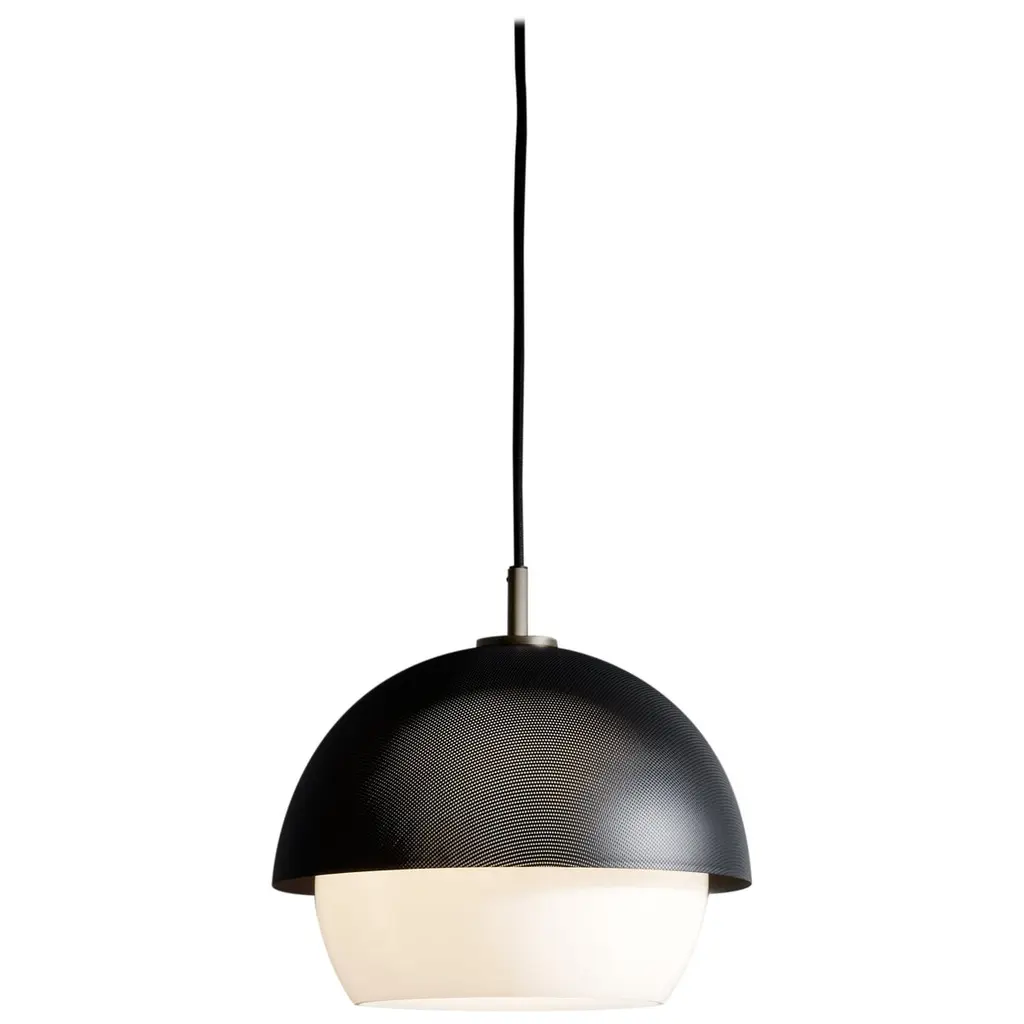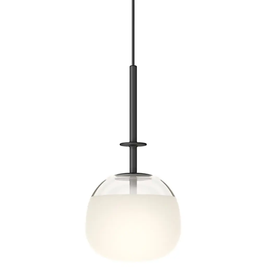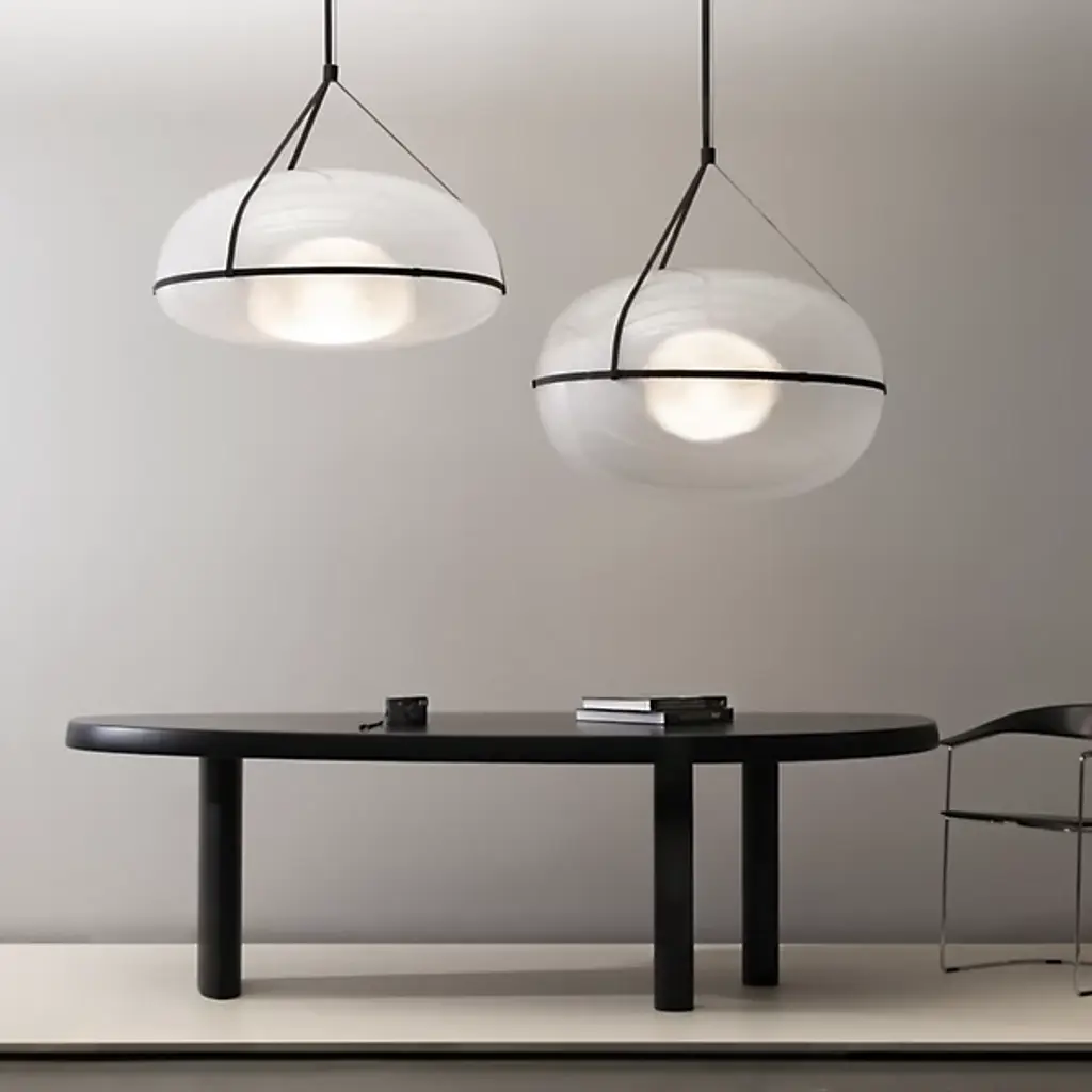 Transform your interiors with the ephemeral and elegant lines of the Iris LED Pendant from A-N-D. An enigmatic design from the mind of Caine Heintzman, it descends from a circular canopy via a slim, strong aluminum stem and curving bracing, supporting bright and energy-friendly lamping inside a voluminous acrylic shade, the captivating elliptical shape transmitting a hazy, opulent warmth to all sides, transforming its surroundings with an elegant, expressive visual lightness matched with a vibrant character.