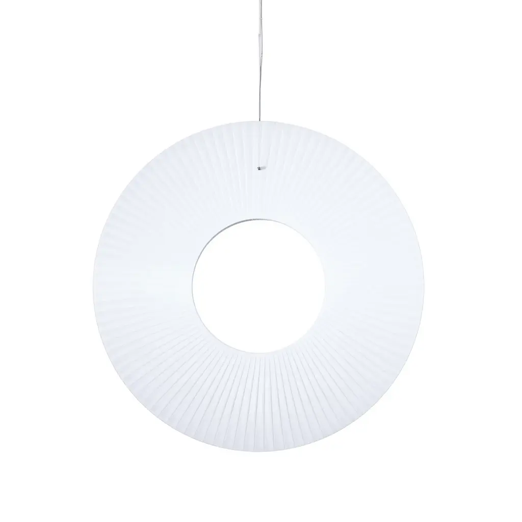 Illuminate your space with the luxurious and inviting Iris Vertical LED Pendant Light from Dix Heures Dix. Its impressive intensity shines softly, creating a unique ambiance reminiscent of a distant star. The elegant textile band adds a touch of sophistication while perfectly diffusing the light. Perfect on its own, or clustered together for a custom lighting display above a dining table or entryway. Highlights