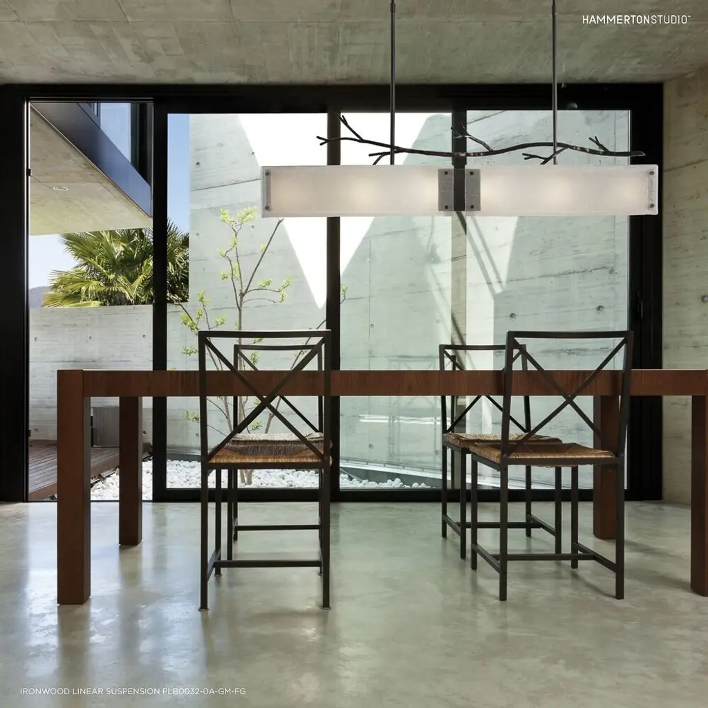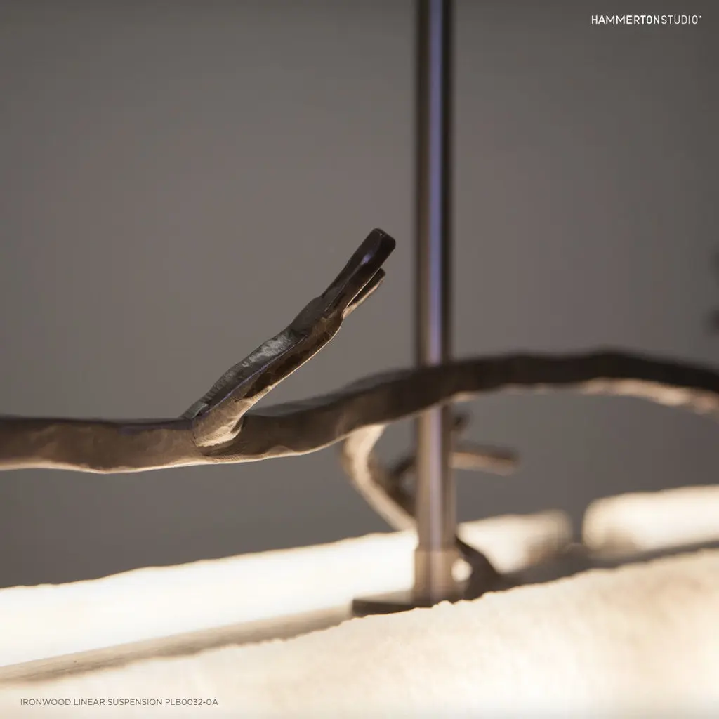 Ironwood Linear Suspension-0D-Burnished Bronze-Granite Glass - Smoke-Threaded Rod Suspension-E26