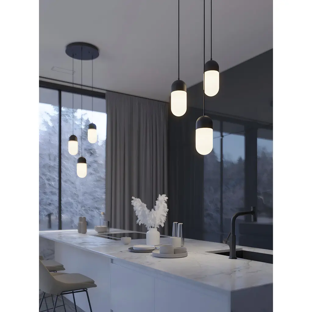 The Irvine LED pendant from AFX brings a fresh, transitional look to your living room or kitchen. Featuring a unique multi-light design, this lighting fixture transforms spaces with its elegant globe shape. Its combination of steel and glass materials adds a touch of sophistication, making it a standout piece in your home.