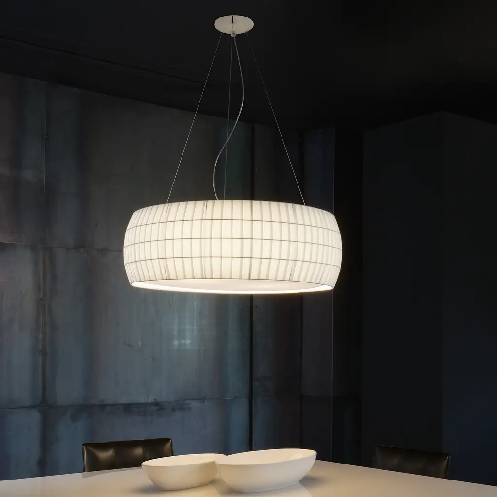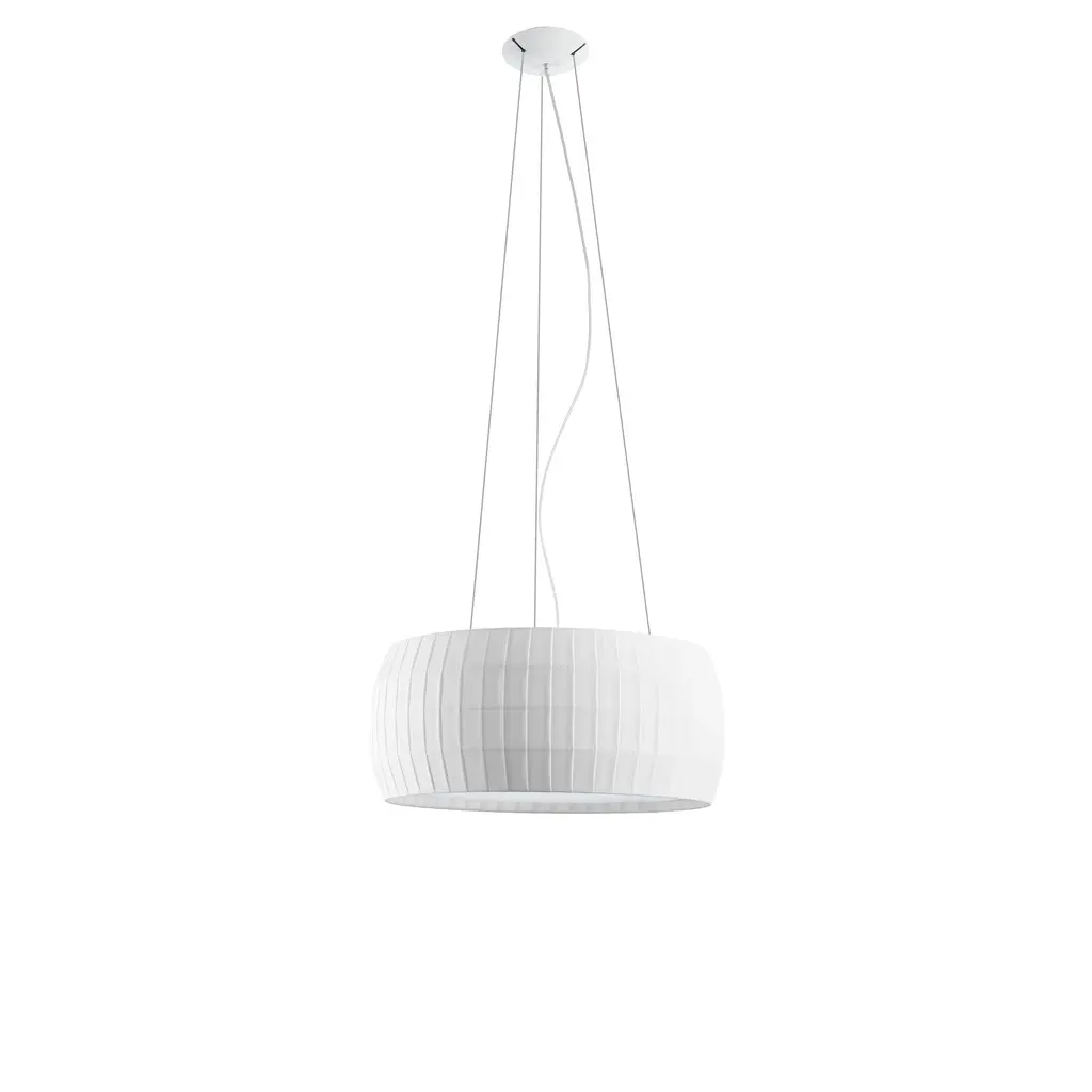 Carpyen Isamu Pendant is a family of suspension lamps designed by Nahtrang in the year 2010 for Carpyen. This light has a white polycarbonate diffuser covered with a white, pearl or olive green bookbinding tape shade with a metal base. Features