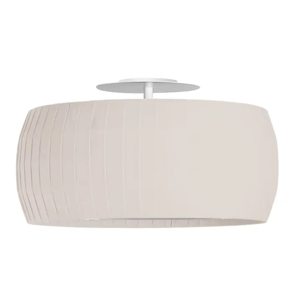 Unmatched in its attention to detail. Spanish studio Nahtran Disseny makes magic happen by draping their graphically perfect framework with a meticulously crafted bookbinding tape shade in the Isamu Semi-Flushmount from Carpyen. Craftsmen painstakingly cut and hand-arrange strips of softly textured bookbinding tape like a beautiful pleated skirt, resulting in a stylish shade. Its metal grid frame leaves subtle indentations of line on the shade that come across in a captivating silhouette when you turn on the lights. A flip of the switch creates a halo of warm light over your ceiling while a spacious glow filters out the tape strips and a glare-reducing diffuser plate at the base.