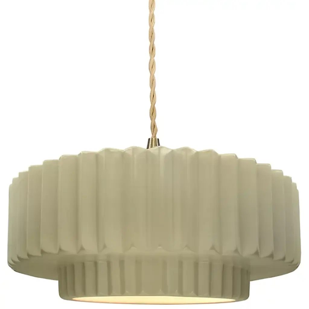 The Isla Pendant from Seascape Lamps uses fabric as both a structural element and a diffuser. Each fixture is handmade in Seascape’s California facility, with a circular profile shaped by folded linen pleats compressed between two round rings and suspended from a central cloth cord. An inset diffuser sits inside the base, using its translucent surface to soften efficient LED light into an even warmth. The fabric’s folds add diagonal dynamism to the round design while direct illumination extends below, creating a character that emphasizes clarity, balance, and the thoughtful use of simple materials.