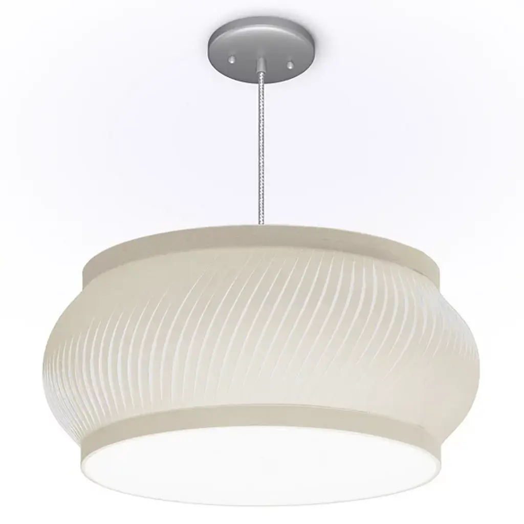 The Isla Pendant from Seascape Lamps uses fabric as both a structural element and a diffuser. Each fixture is handmade in Seascape’s California facility, with a circular profile shaped by folded linen pleats compressed between two round rings and suspended from a central cloth cord. An inset diffuser sits inside the base, using its translucent surface to soften efficient LED light into an even warmth. The fabric’s folds add diagonal dynamism to the round design while direct illumination extends below, creating a character that emphasizes clarity, balance, and the thoughtful use of simple materials.