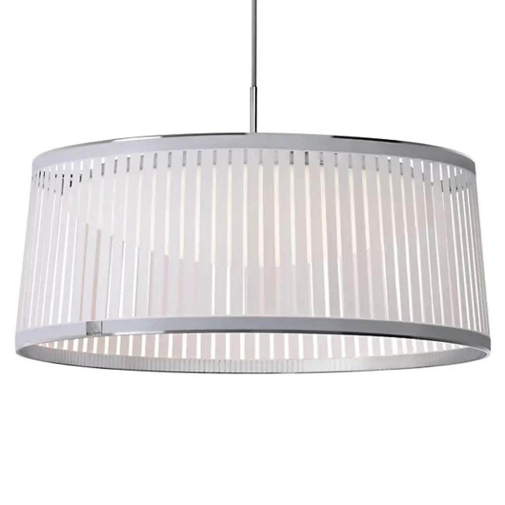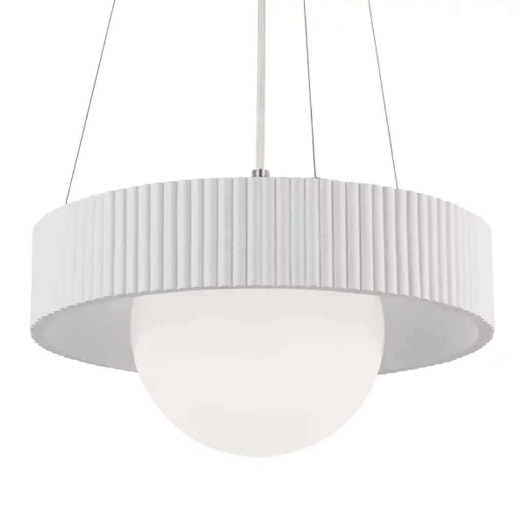 The Isla Pendant from Seascape Lamps uses fabric as both a structural element and a diffuser. Each fixture is handmade in Seascape’s California facility, with a circular profile shaped by folded linen pleats compressed between two round rings and suspended from a central cloth cord. An inset diffuser sits inside the base, using its translucent surface to soften efficient LED light into an even warmth. The fabric’s folds add diagonal dynamism to the round design while direct illumination extends below, creating a character that emphasizes clarity, balance, and the thoughtful use of simple materials.