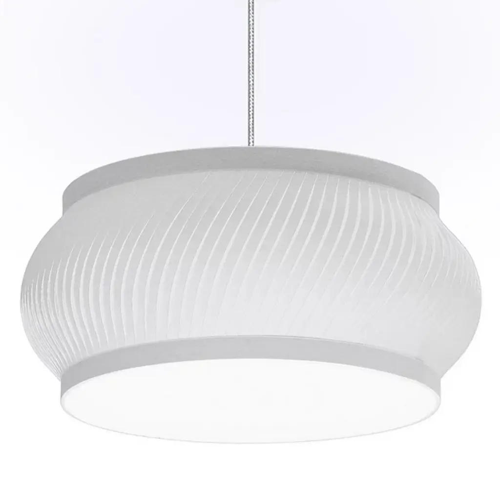The Isla Pendant from Seascape Lamps uses fabric as both a structural element and a diffuser. Each fixture is handmade in Seascape’s California facility, with a circular profile shaped by folded linen pleats compressed between two round rings and suspended from a central cloth cord. An inset diffuser sits inside the base, using its translucent surface to soften efficient LED light into an even warmth. The fabric’s folds add diagonal dynamism to the round design while direct illumination extends below, creating a character that emphasizes clarity, balance, and the thoughtful use of simple materials.