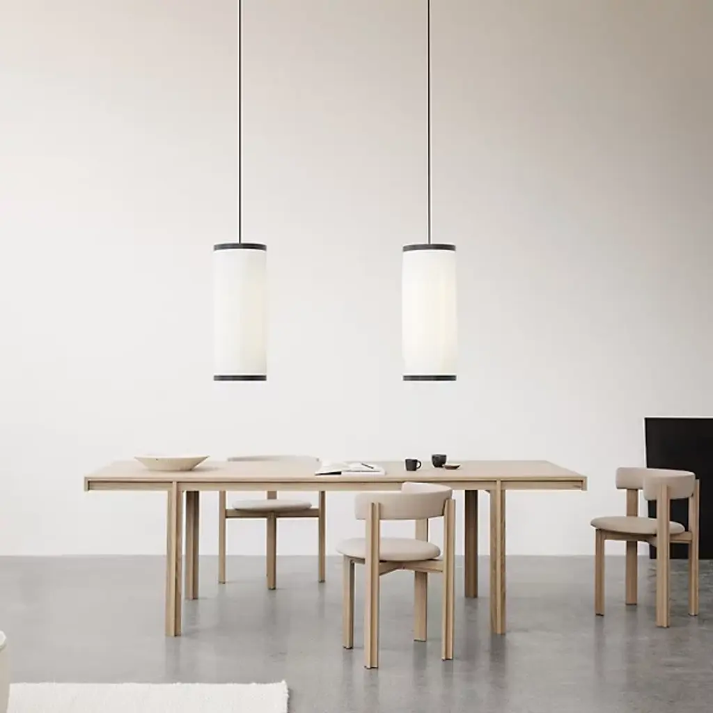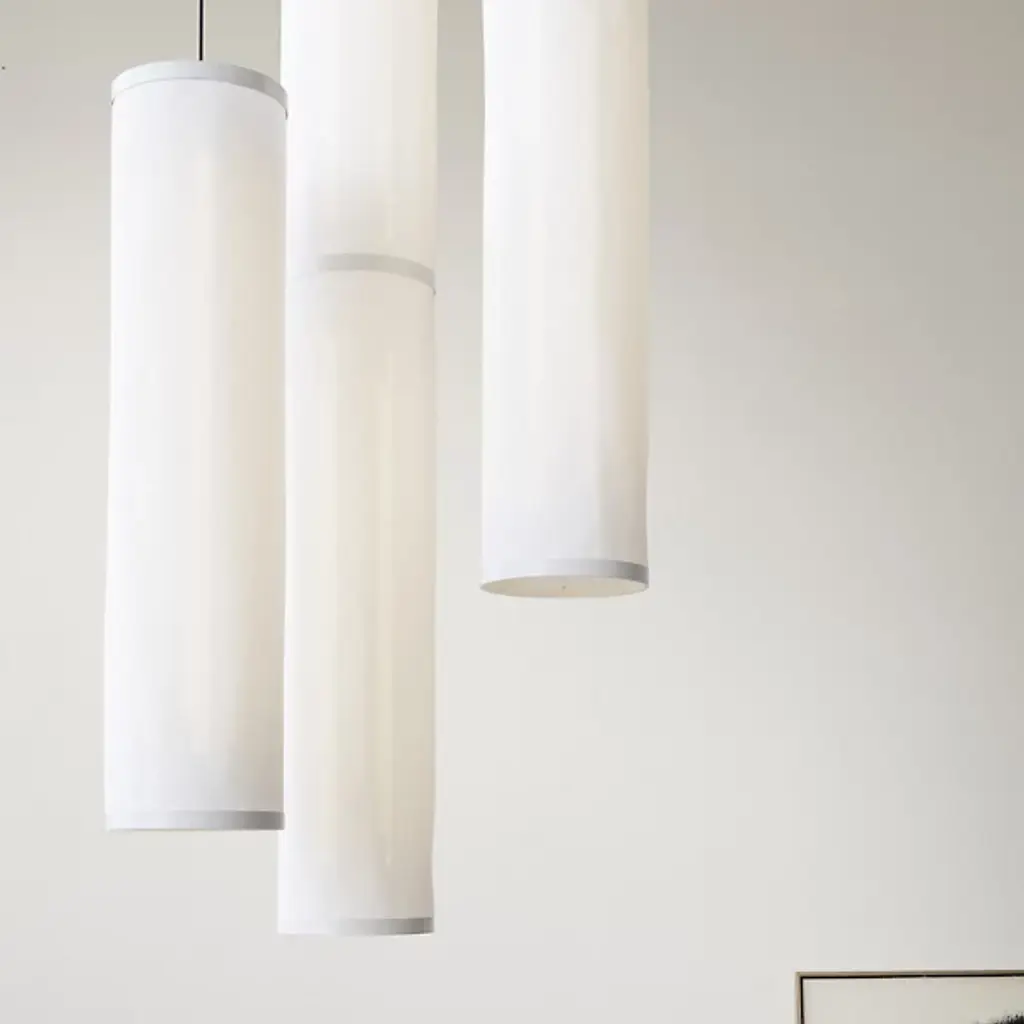 Embrace artistry and impeccable functionality in one package with the open, airy appeal of the Isol Pendant from Astep. A David Thulstrup design suspended via a single cable from a circular canopy, it is designed for public places, able to cut crowd noise using a cylindrical shade of patented Snowsound Fiber textile in a cylindrical form accented by contrasting aluminum rings. The fabric is sustainable, recyclable, and Greenguard Gold certified, indicating it has low emissions and contributes to making air quality better around it. The pendant transforms its surroundings with ease, adding a modern acoustic enhancement that aids in privacy and restraint.