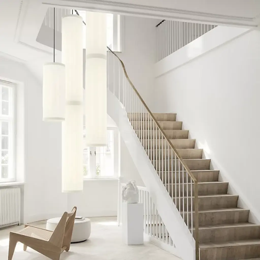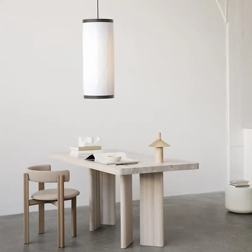 Embrace artistry and impeccable functionality in one package with the open, airy appeal of the Isol Pendant from Astep. A David Thulstrup design suspended via a single cable from a circular canopy, it is designed for public places, able to cut crowd noise using a cylindrical shade of patented Snowsound Fiber textile in a cylindrical form accented by contrasting aluminum rings. The fabric is sustainable, recyclable, and Greenguard Gold certified, indicating it has low emissions and contributes to making air quality better around it. The pendant transforms its surroundings with ease, adding a modern acoustic enhancement that aids in privacy and restraint.