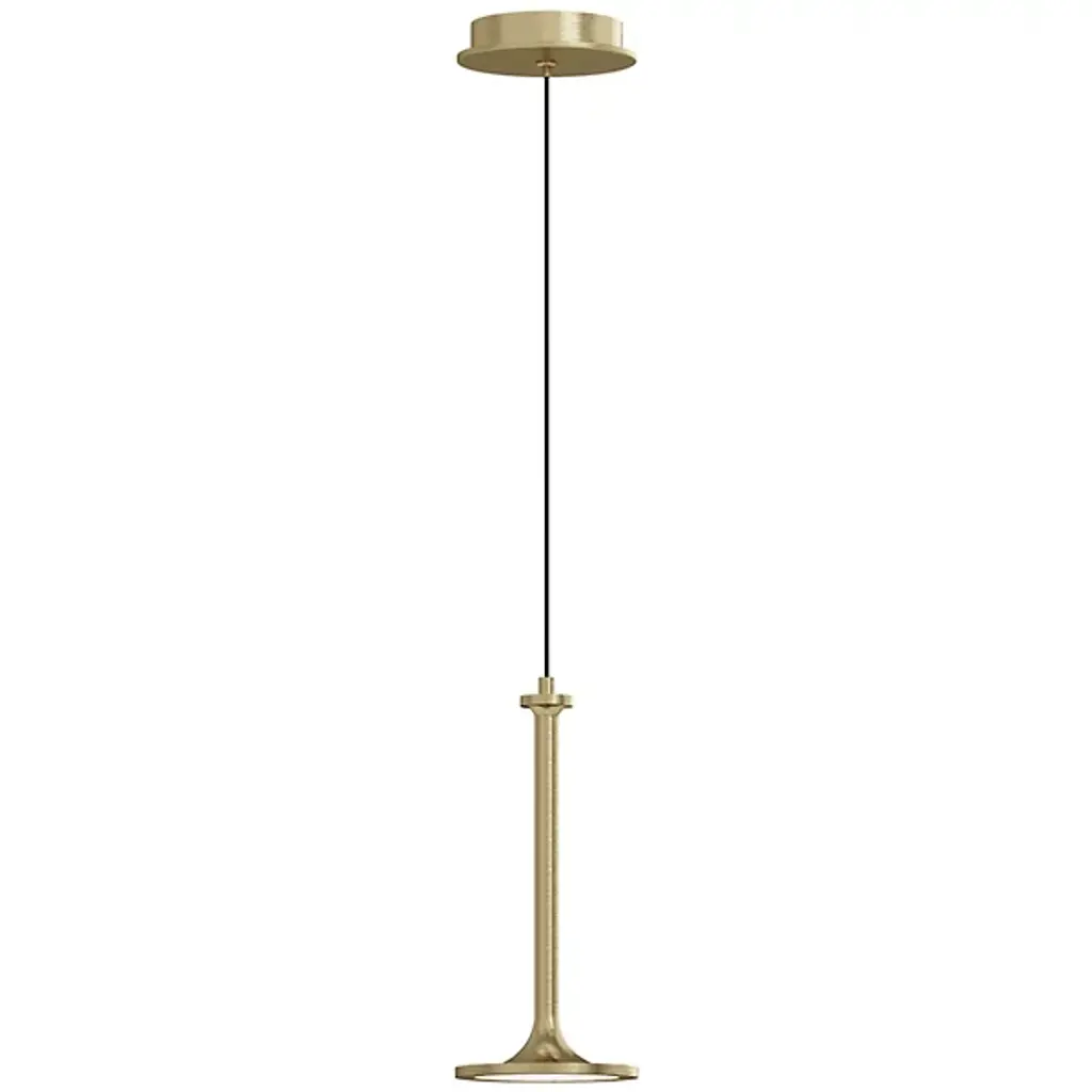 A tasteful, spindly form with sculptural, robust functionality, the Issa LED Pendant from Alora Mood is dressed to impress. An aluminum and steel construction inspired by pottery forms from the 1960s, it starts with a stepped circle canopy via a slim cable; it seats potent and energy-efficient LED lamping within a slim metal housing, its slender form broadcasting strong lamping that belies its size. Direct glare is mellowed with ease by a circular diffuser of frosted acrylic, transforming it into an even layer of warmth around the fixture.