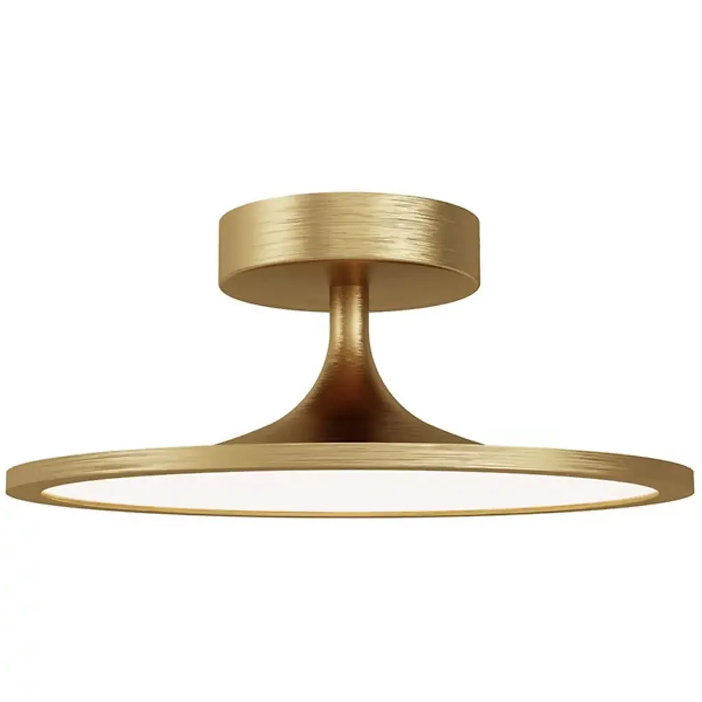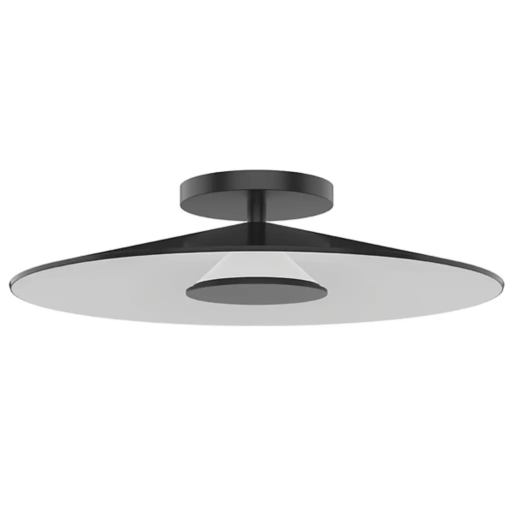 The Issa LED Semi-Flushmount from Alora Mood enriches its surroundings with an inspired, retro-modern appeal. Ideal for confined spaces or low ceilings, it’s anchored by a low-profile circular canopy. The piece is based on pottery forms from the 1960s. Its smooth metal construction sweeps out, holding LED lamping in its slim dish. A frosted acrylic disc extends across the light module, transforming direct downlight into a pleasing and even layer of light below.