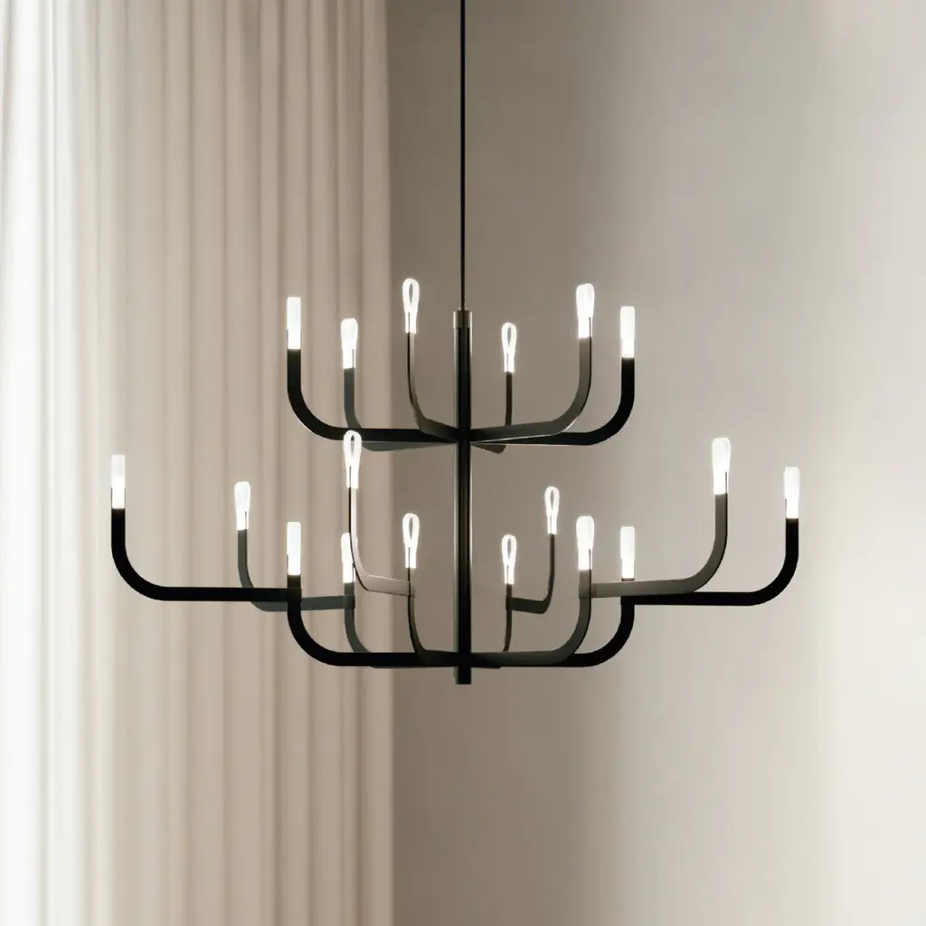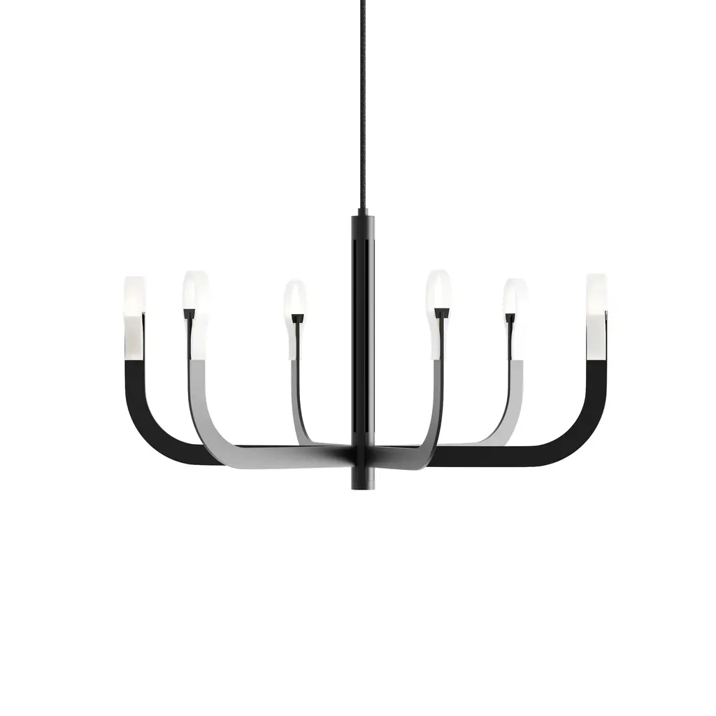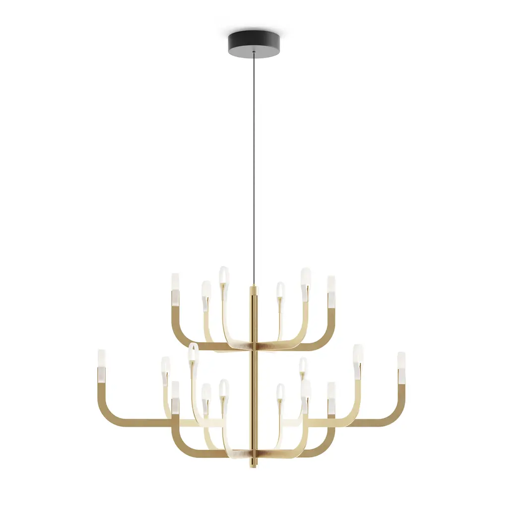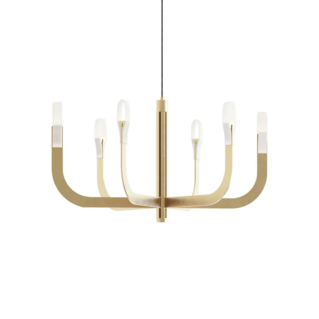 Transform your space into a luxurious haven with the J-US LED Pendant Light by Luceplan. Designed by Alessandro Zambelli and crafted in Italy, this pendant light combines modern technology with classic design for a stunning visual effect. The curved aluminum arms are powered by a central rod and emit a warm LED glow, creating an ethereal ambiance without the need for shades. Elevate your space with this sophisticated and unconventional lighting masterpiece. Highlights