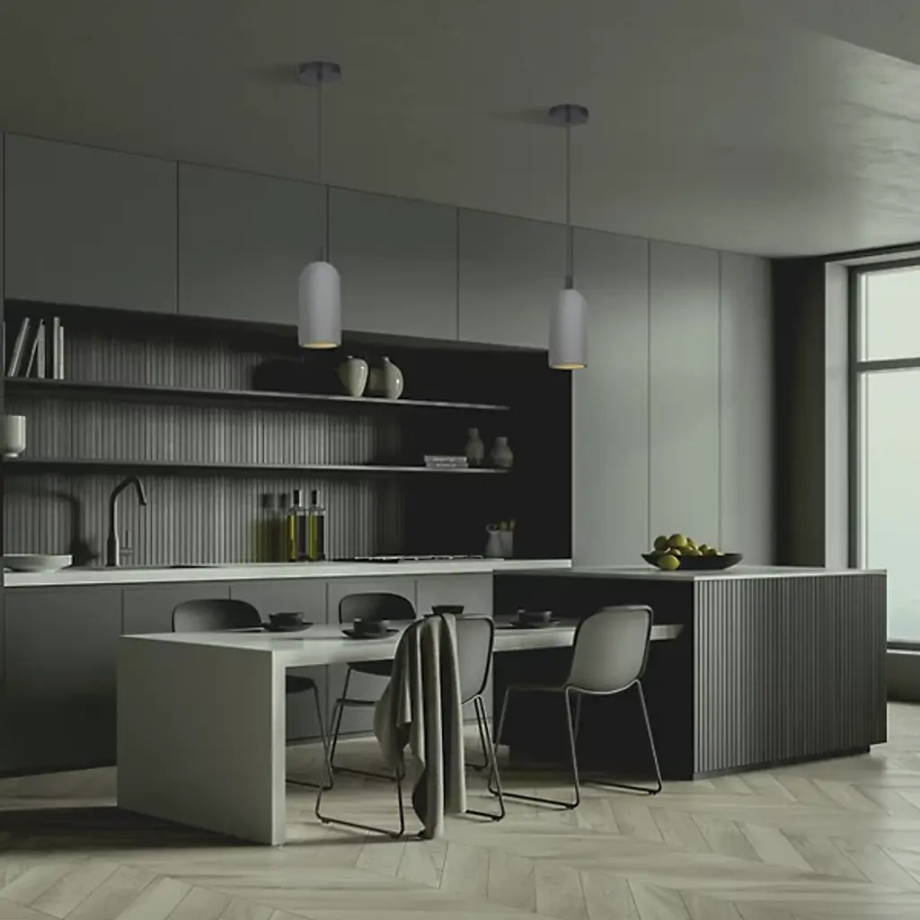 The Jack Mini Pendant from Canarm strips lighting down to pure essentials. A single cylindrical shade focuses light downward with precision, making it ideal for task-oriented spaces. The adjustable rod mounting system provides flexible positioning options, perfect for kitchen islands or workspace lighting. The design eliminates unnecessary elements while maintaining a strong visual presence. This pendant’s understated silhouette allows the quality of light itself to become the central design element.