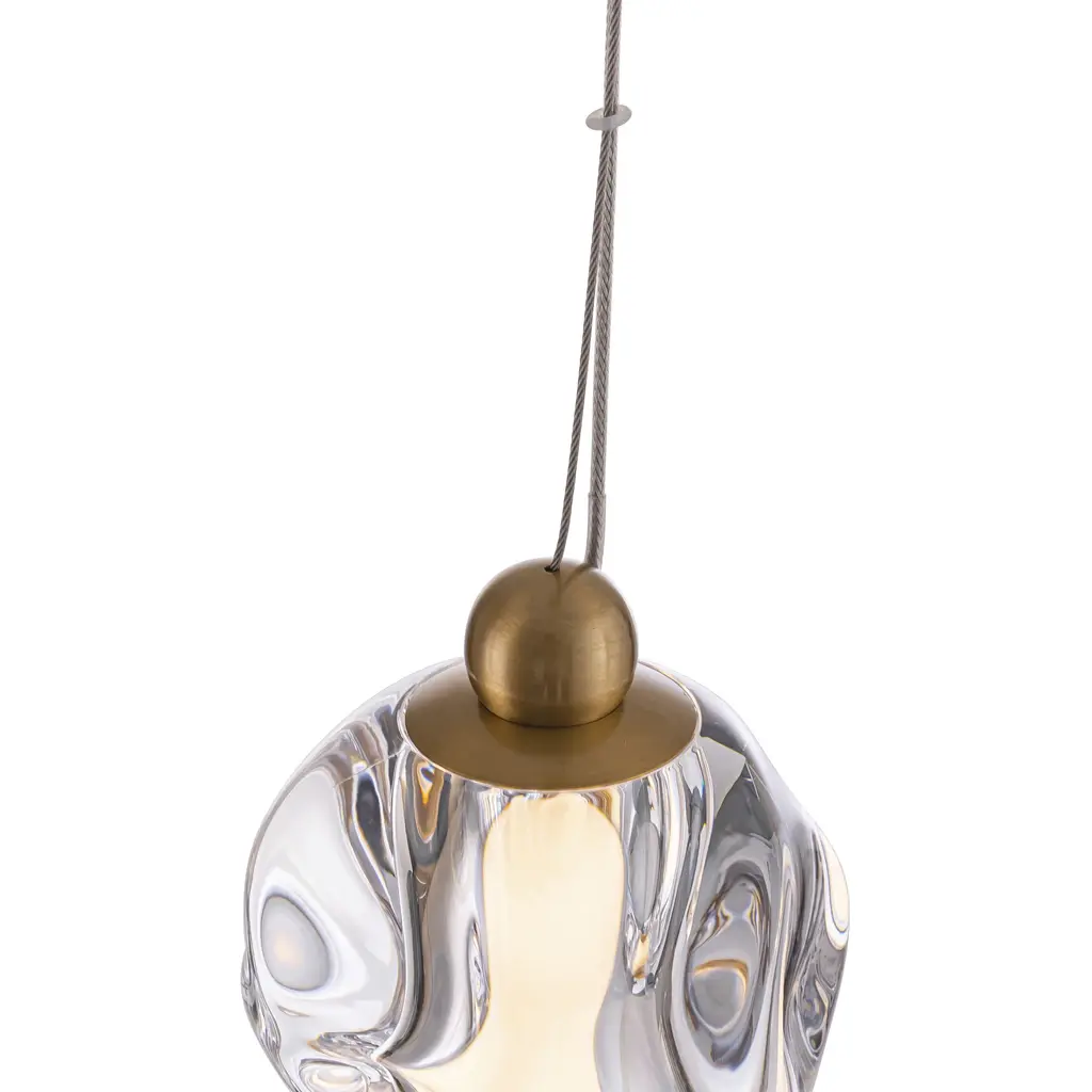 Inspired by the elegant luxury of a contemporary pearl necklace, the Jackie LED Collection features dimmable LED modules wrapped in beautiful organic-shaped clear acrylic globes linked together with polished nickel or brass connectors. Create a custom work of art that makes a bold statement and delivers beautiful illumination using single or multiple strands, pendants, and sconce.