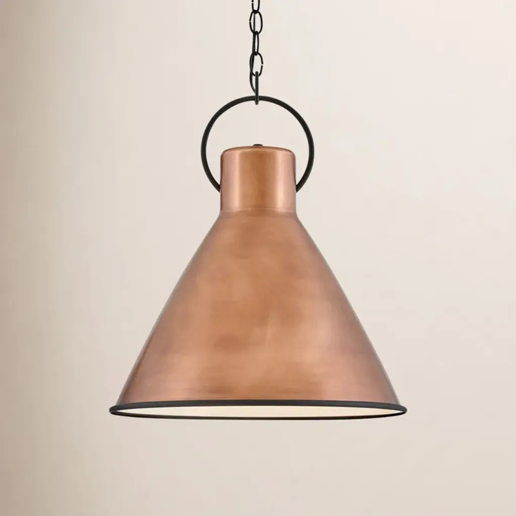 Add in an ambient glow to your space with our cone-shaped pendant. Crafted from solid mango wood with gleaming metallic accents, it channels a vintage-inspired style we love. This fixture is compatible with sloped ceilings and height-adjustable for versatility. Plus, its dimmable design lets you create the perfect mood lighting for any occasion– whether it's brightening your kitchen island or cozy reading nook.