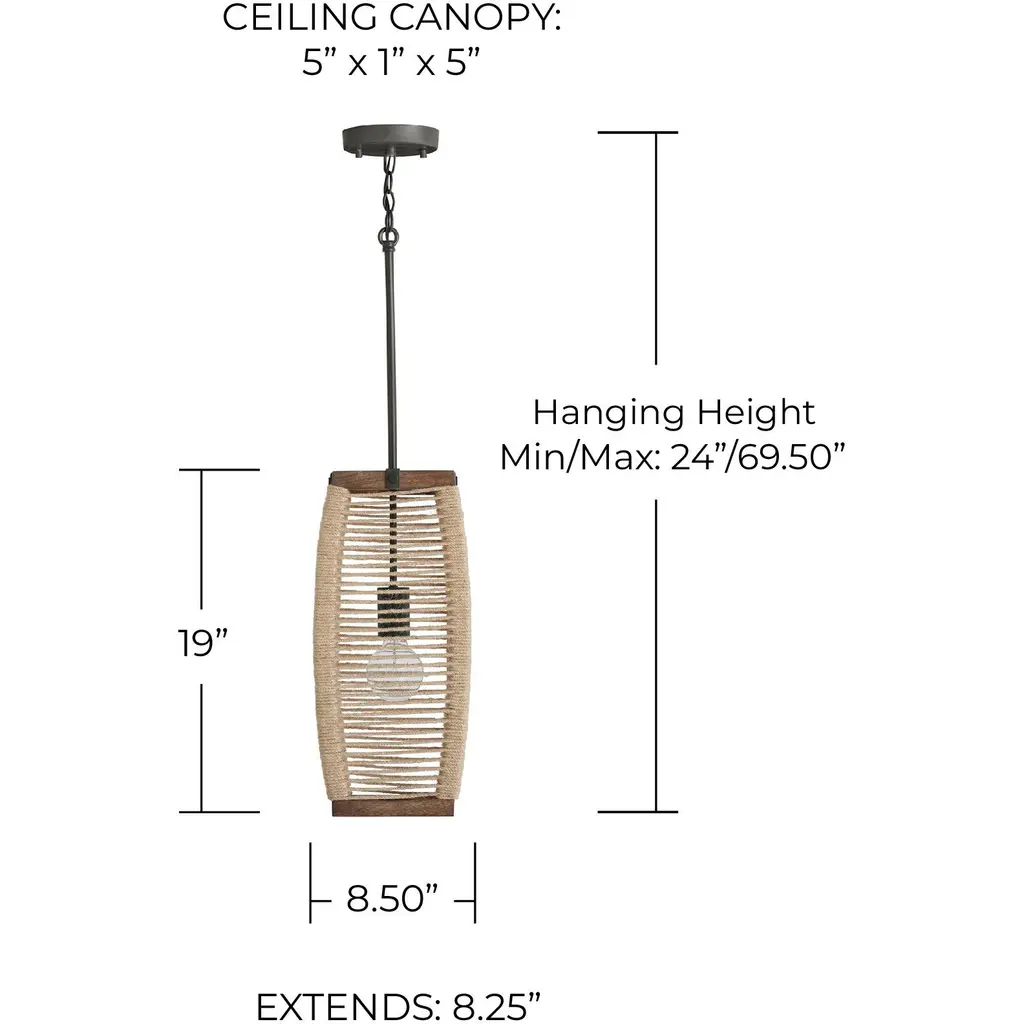 Rustic farmhouse flair meets Scandinavian simplicity with the 1-Light Pendant. Intricately hand-woven jute rope adds a layer of texture and visual interest to the handcrafted finish.