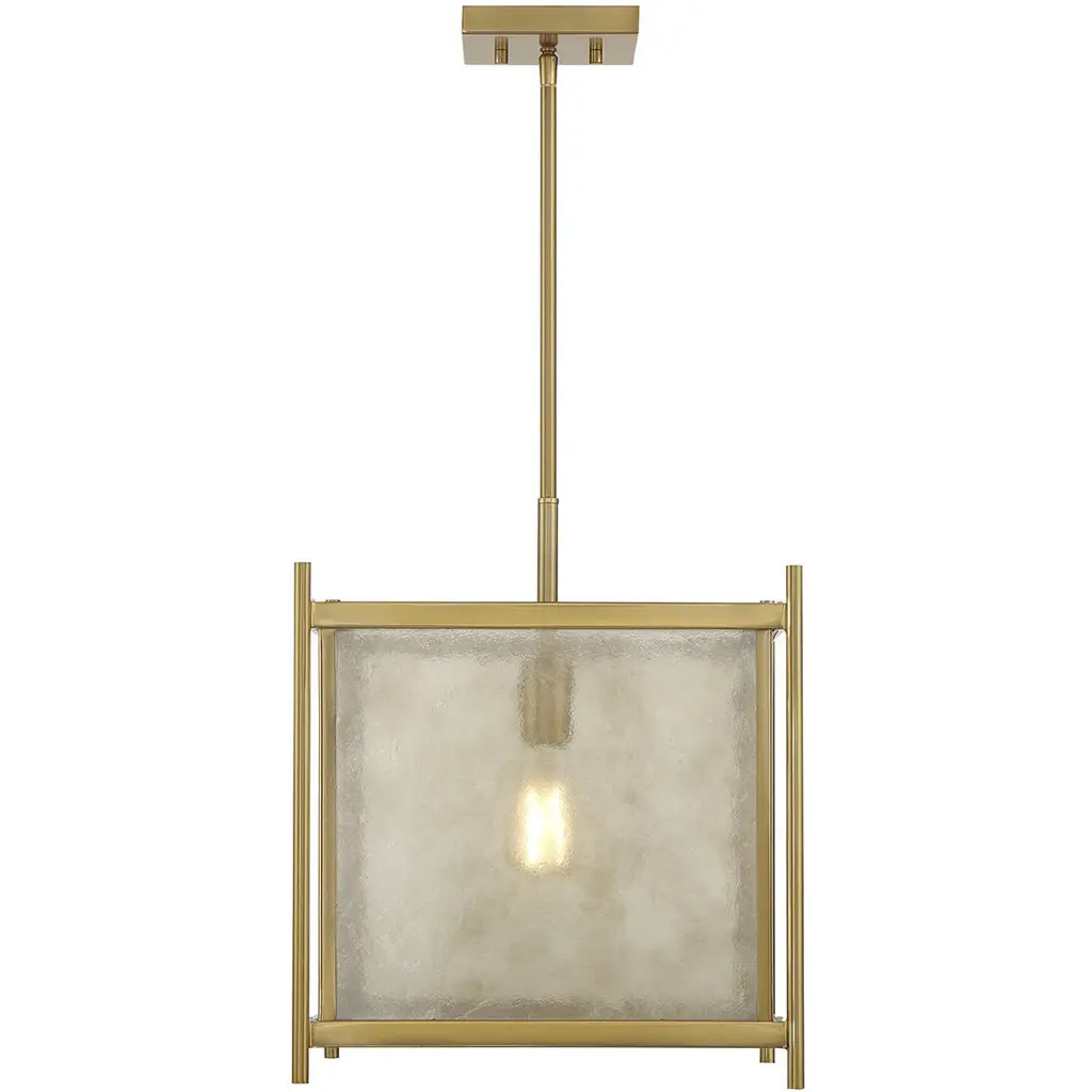 Create a warm and welcoming glow with the geometric chic Savoy House Jacobs 1-light pendant. The clear mica glass shade pairs beautifully with the Warm Brass finish and imparts eye-catching texture. Jacobs is 14" in width and has an adjustable height ranging from 17.5" to 71.5". Comes with four 12" downrods and one 6" downrod. Uses one standard size bulb of up to 60 watts. Bulb not included.