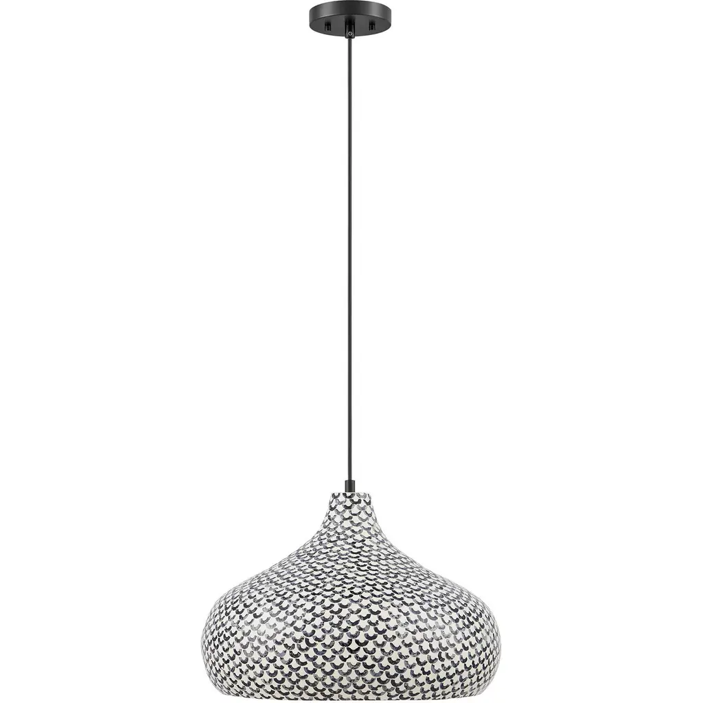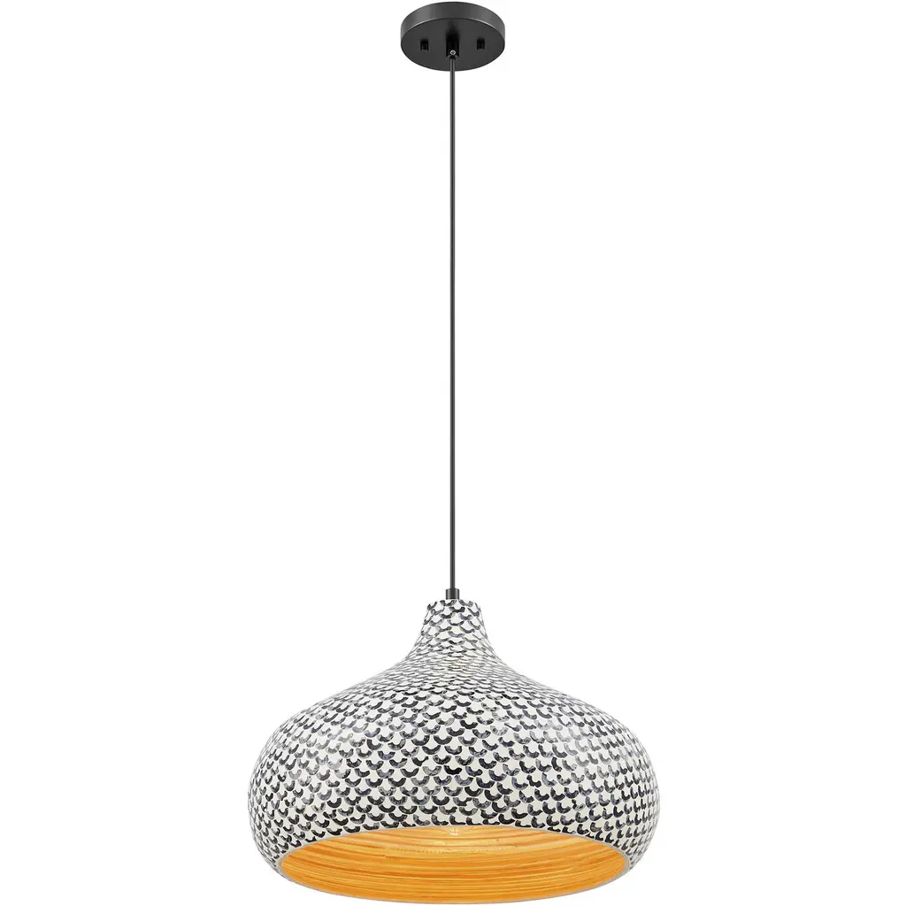 Jade 1 Light 18 Inch Black And White Shell Pendant Ceiling Light