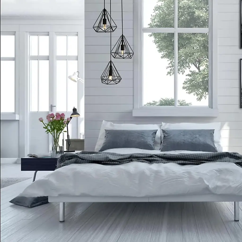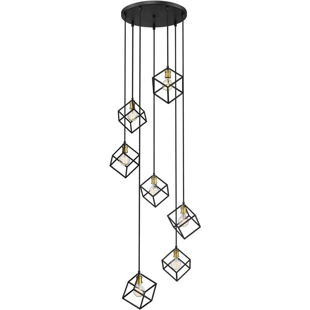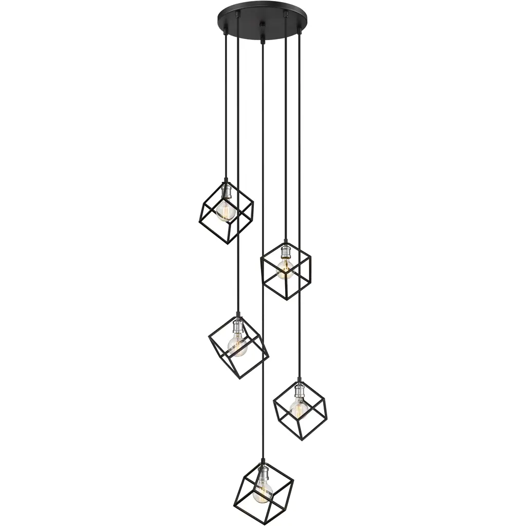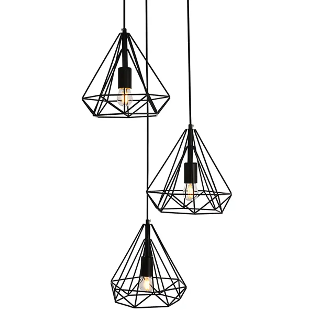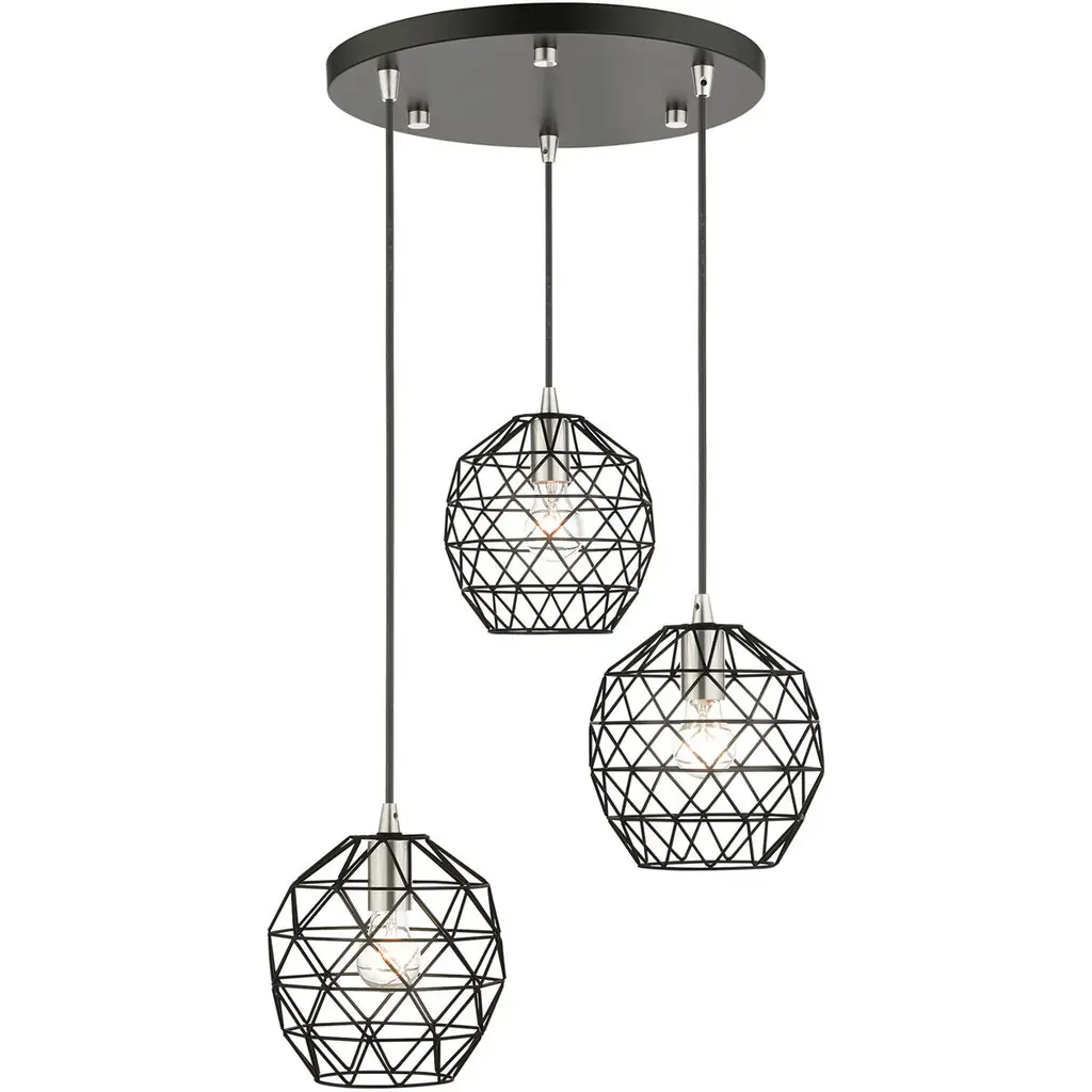 The Jago Multi Light Pendant from Elegant Lighting is a geometric centerpiece suspended in mid-air. This trio of diamond-shaped cages dangles from slender cords. Each enclosure, crafted from iron and aluminum, houses a single bulb that glows like a captured star. Whether clustered tightly for intimate spaces or spread out for grand entrances, the open framework of this pendant allows light to escape in all directions.