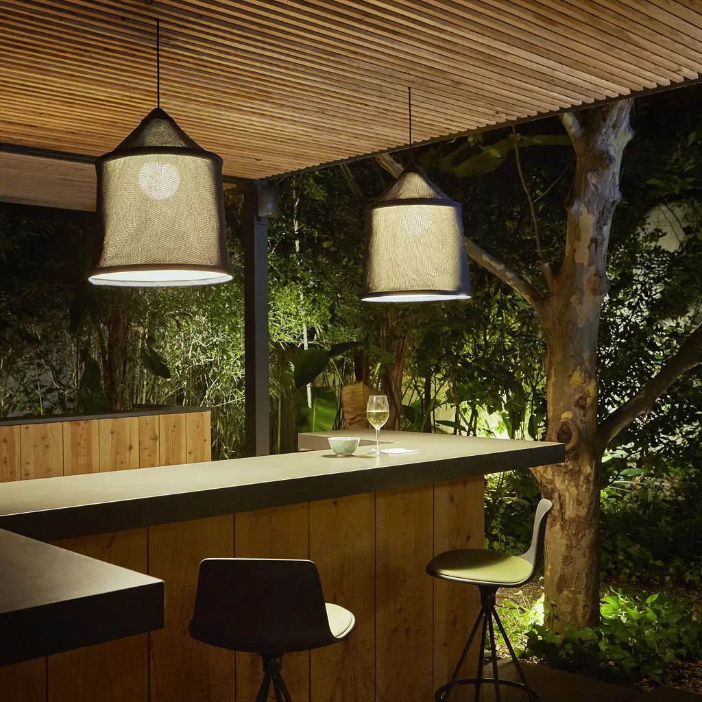 Experience the perfect blend of rustic charm and modern innovation with the Jaima LED Pendant Light from Marset. Inspired by North African Bedouin tents, this stunning light features a textilene shade attached to a stainless steel body, beautifully showcasing the fabric's texture. The LED light diffuses downwards, creating a warm and inviting atmosphere in your kitchen or dining room. Highlights