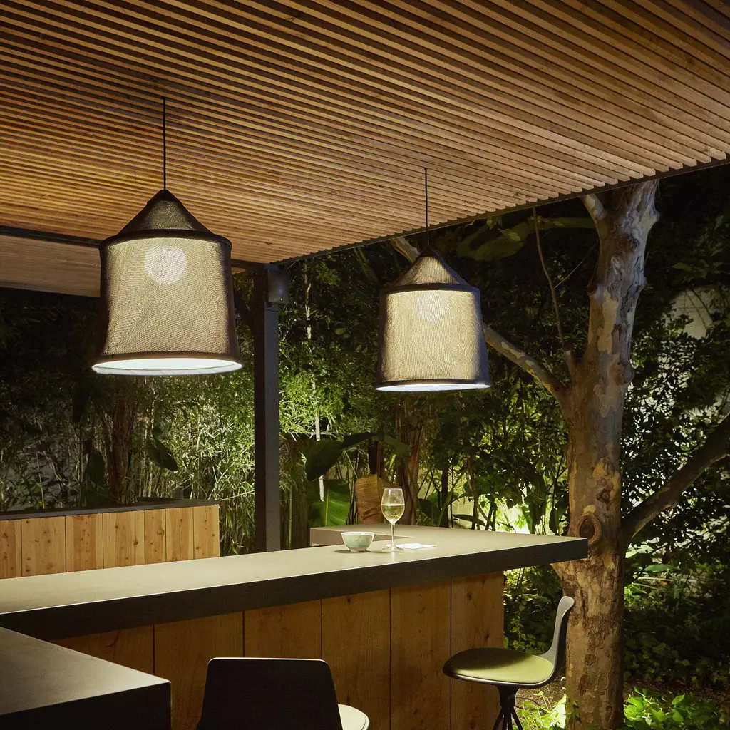 Experience uncommon versatility and rustic appeal with the Jaima Outdoor LED Pendant Light from Marset. The innovative design allows for sweeping illumination in all corners of your exterior space. The textilene shade and warm LED glow create an elegant and inviting atmosphere, while the stainless steel frame adds a touch of understated elegance. Highlights