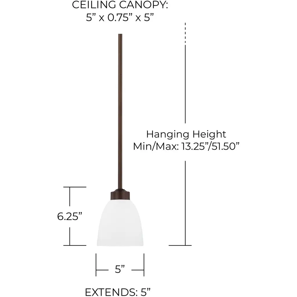 5" 1-Light Soft White Glass Pendant in Bronze