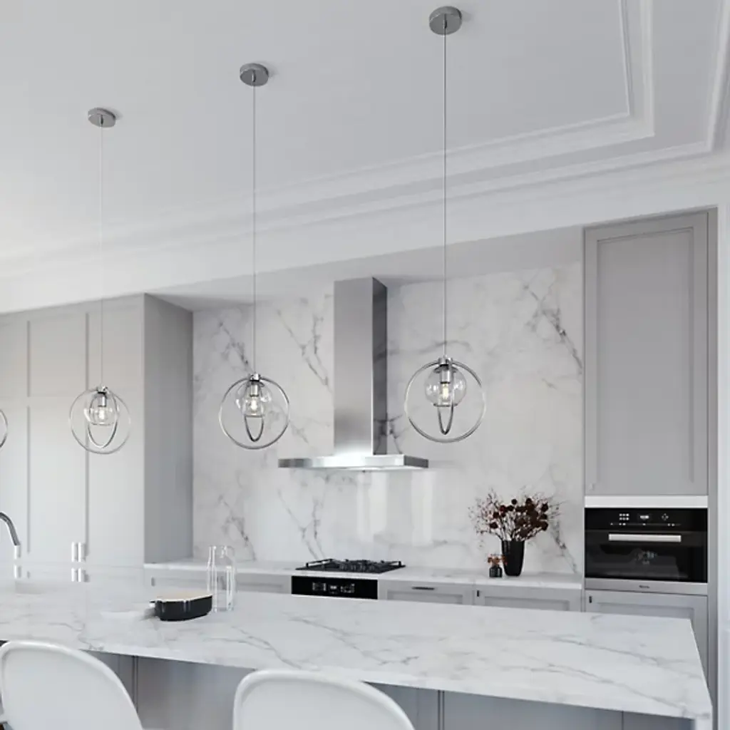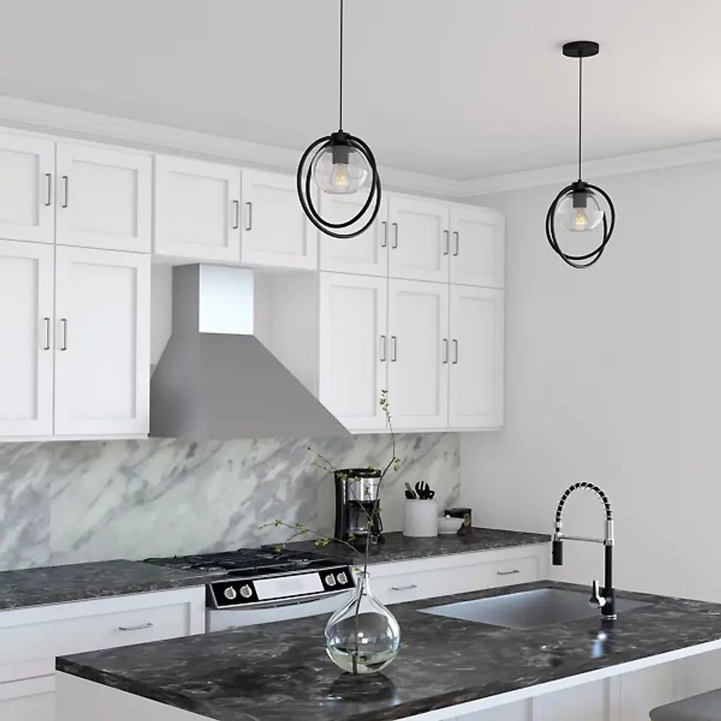 Reimagine how breathtaking your kitchen or dining room space could be with the AFX Jamie Pendant. This dazzling pendant light features a strong, low-hanging design and crisp exterior finish, adding a dynamic flare to any indoor space. The stylish exterior shade helps redirect beautiful downlight to the far corners of your indoor space. From the design to the top-tier performance, this dazzling overhead pendant light adds depth and warm, ambient light to your kitchen island or dining room space.