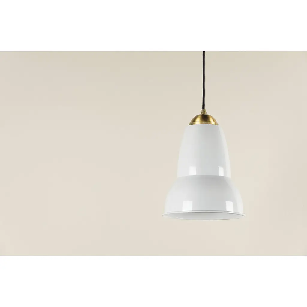 The Jamila wall sconce and pendant feature a cool, contemporary form that pivots to create directional light. The glossy white bell shade draws inspiration from the farmhouse trend while feeling completely fresh and modern. Intricate knurling on the aged brass cap is an understated detail that sets the style apart.