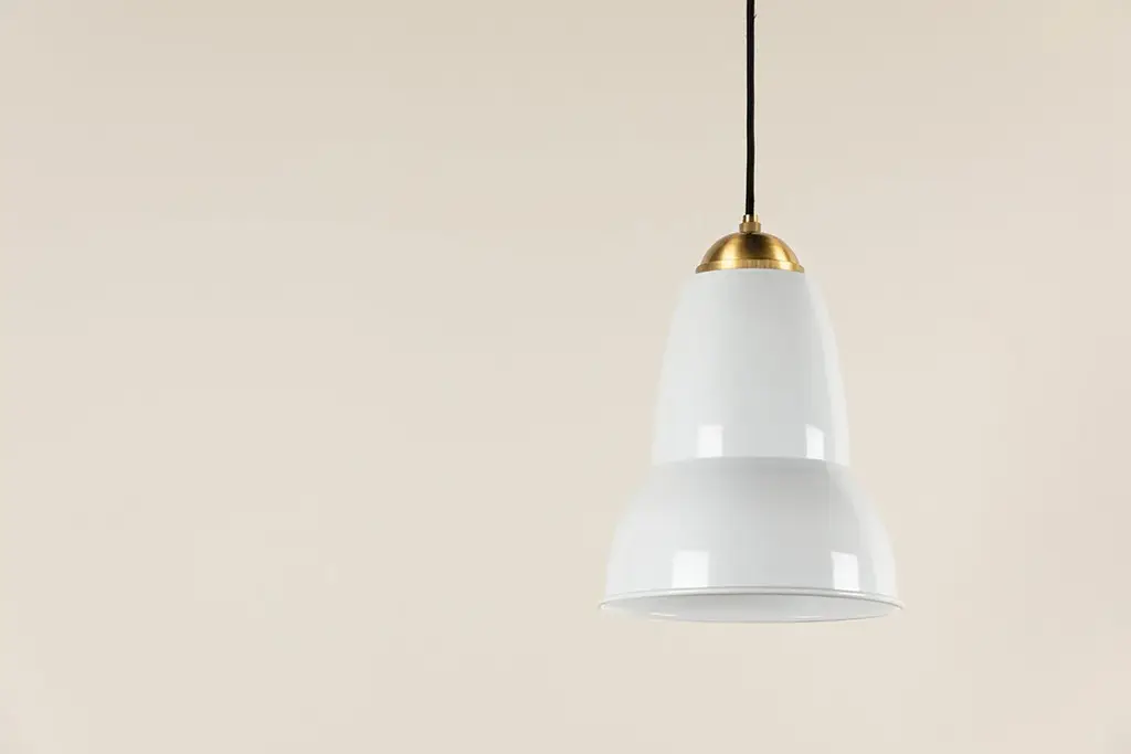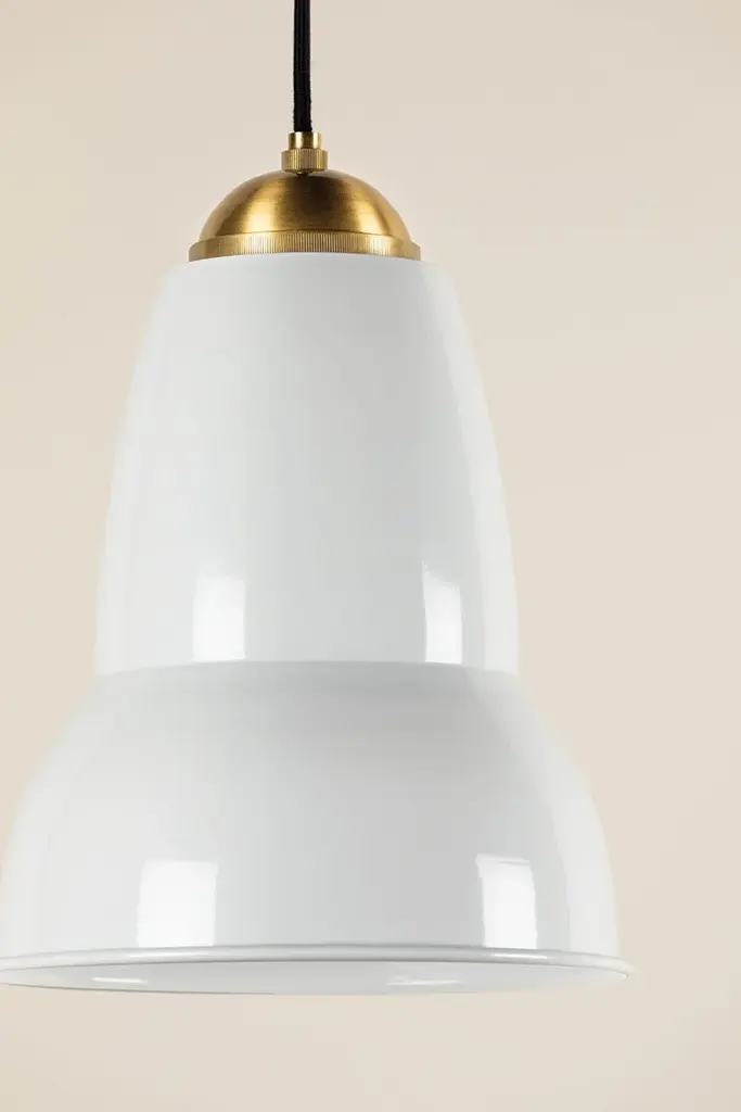 The Jamila wall sconce and pendant feature a cool, contemporary form that pivots to create directional light. The glossy white bell shade draws inspiration from the farmhouse trend while feeling completely fresh and modern. Intricate knurling on the aged brass cap is an understated detail that sets the style apart.