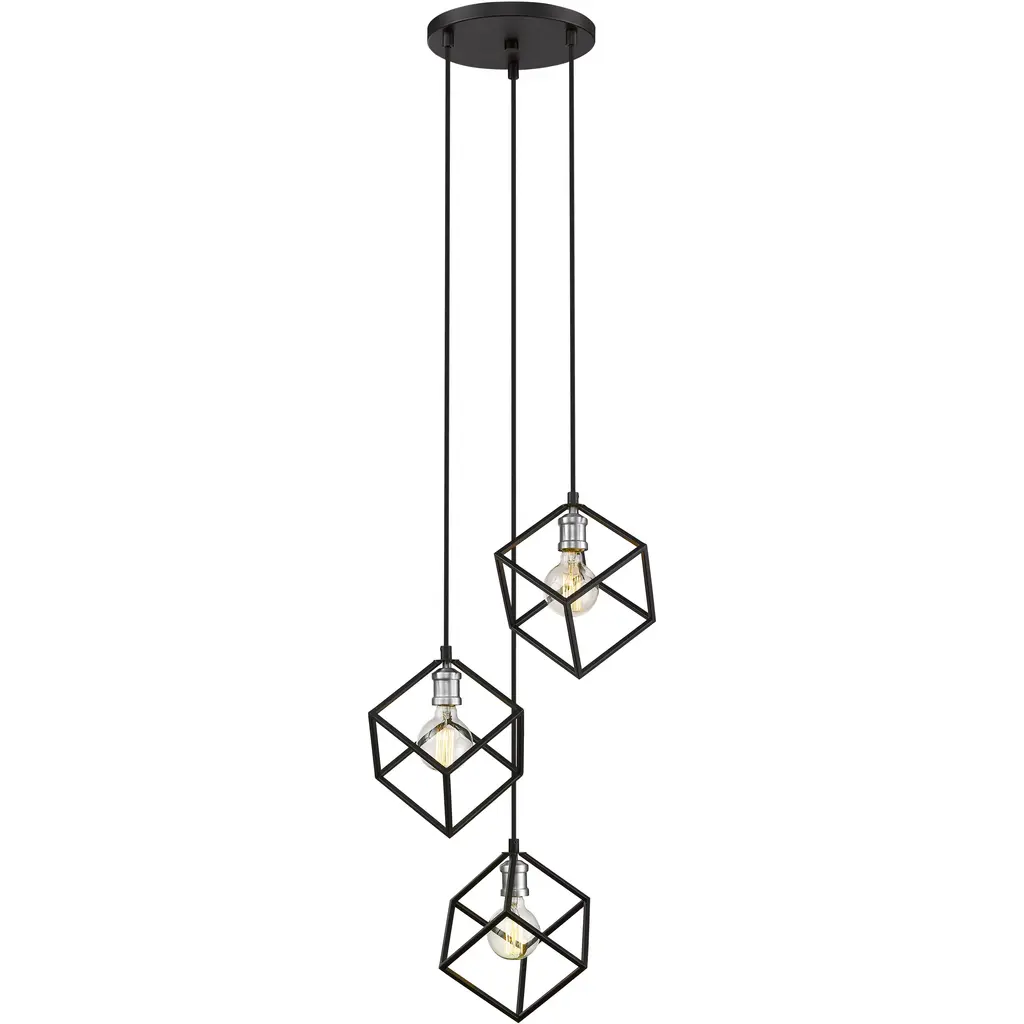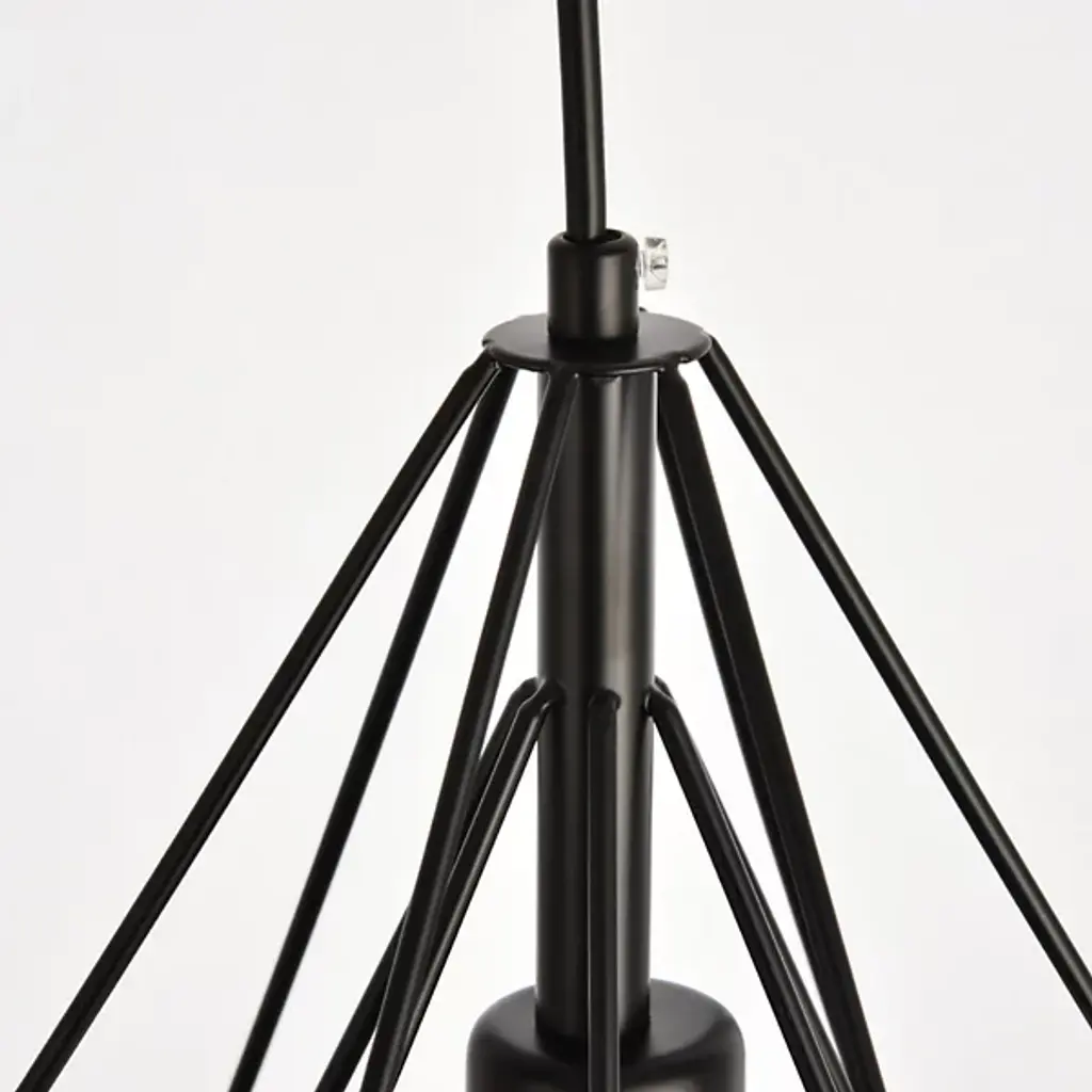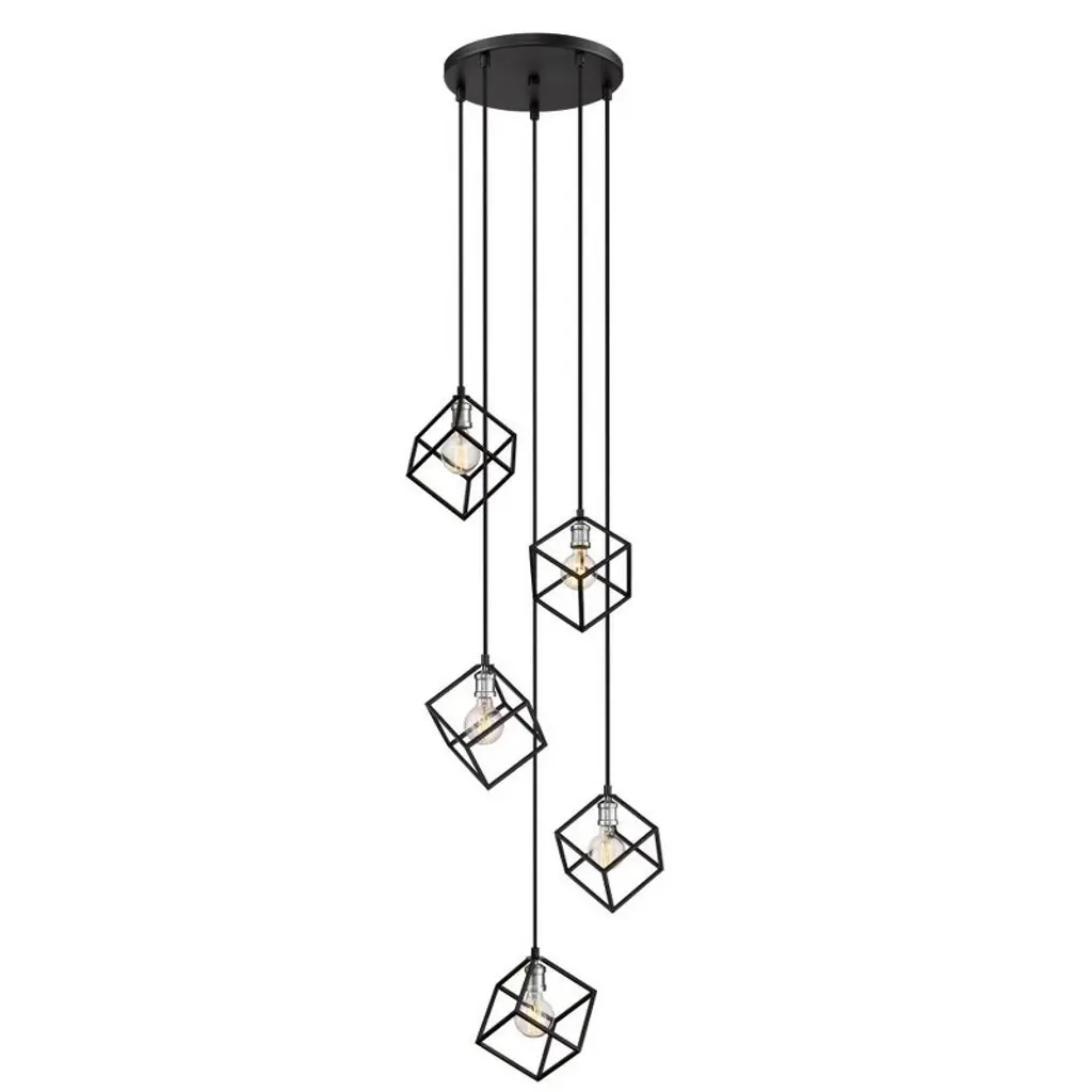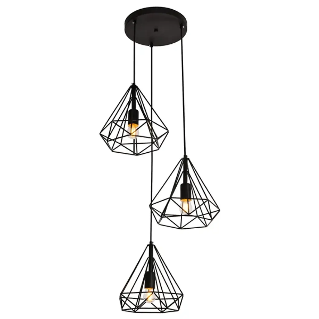 Behold the Jamis LDPD2091 Multi-Light Pendant from Huxe, a captivating fusion of sublime symmetry and contemporary elegance. This pendant, perfectly aligned with current trends, introduces a refreshing ambiance to any space, be it a bedroom, living room, kitchen, or studio. Crafted meticulously from iron and aluminum, it features slender rods that intricately form complex, faceted gem-shaped shades in a strong black finish. Suspended gracefully by slim cords and a circular canopy, this pendant emanates an industrial vibe with a minimalist allure. Enhanced by exposed lamping at the heart of each open frame, it exudes vintage charm, culminating in a truly remarkable aesthetic.