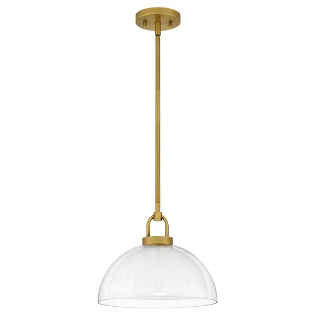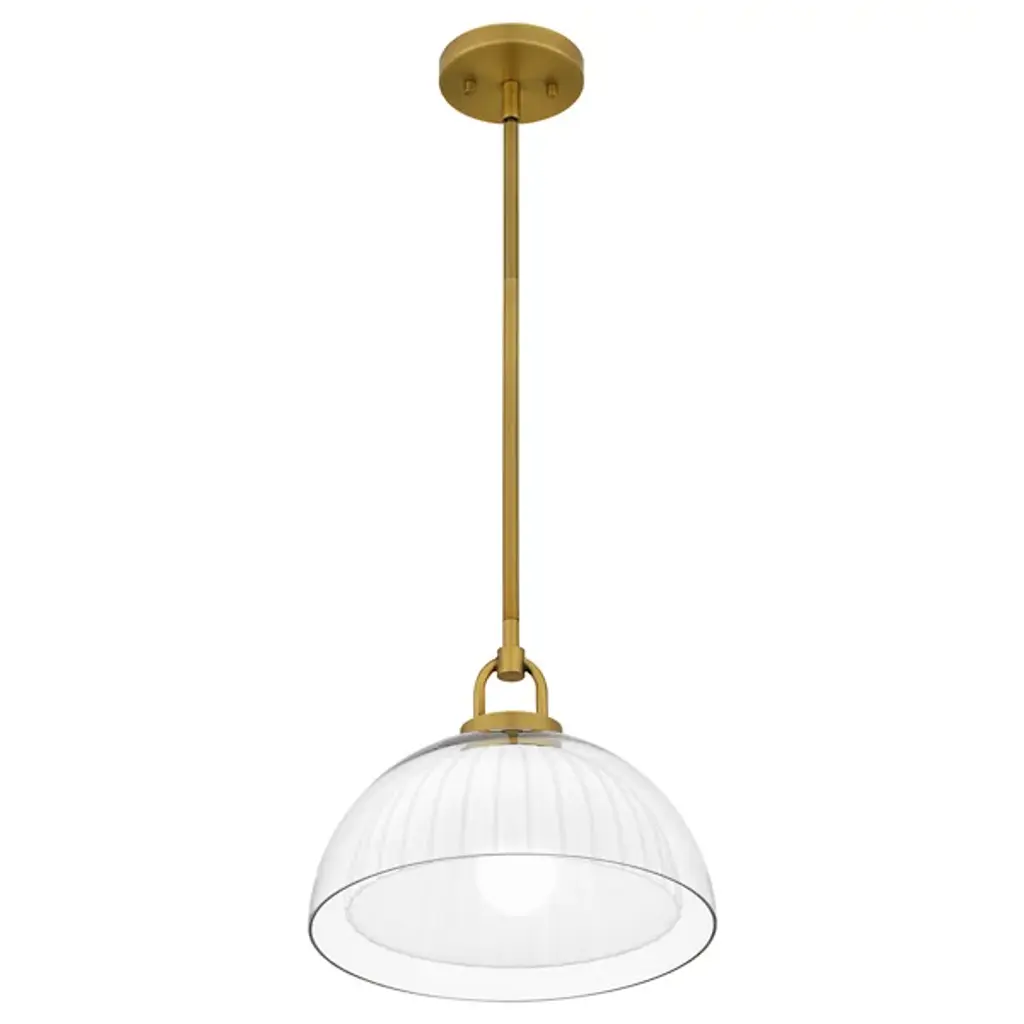 The Jansen Pendant from Quoizel showcases a sophisticated double-layered design that adds a touch of elegance to any space. The outer layer features a clear glass dome, while the inner shade boasts a ribbed texture, creating an intriguing interplay of light and shadow. This pendant’s metallic frame and canopy complement the glass elements, resulting in a harmonious blend of materials. The fixture’s adjustable height allows for versatile installation in various settings, from dining areas to foyers or offices. The Jansen Pendant’s clean lines and modern silhouette make it a stylish addition to contemporary interiors.