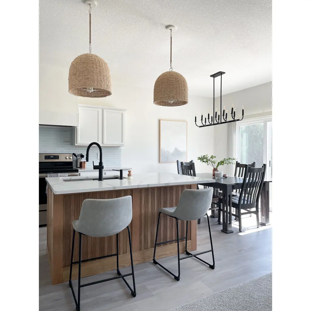 Jasper 3 Light Matte White + Natural Wood Pendant