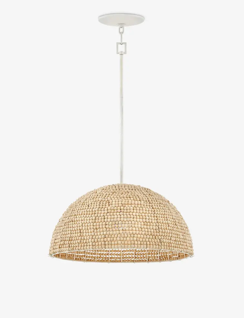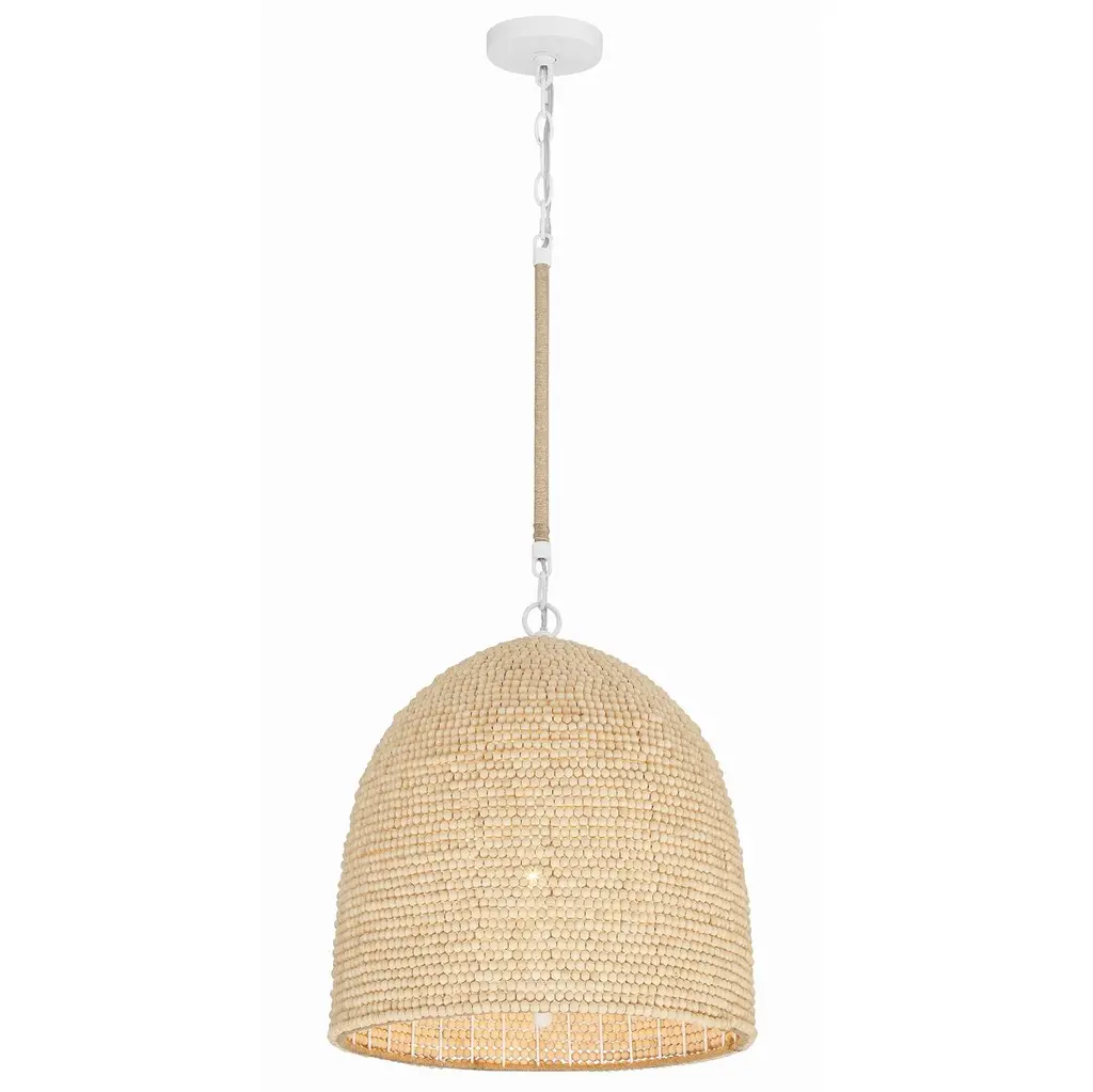 Bring a down-to-earth style to your home with the Jasper pendant. Hand-strung wooden beads, tightly woven, create a dramatic statement. The hand-wrapped jute rod accentuates the pendant's natural allure, making it a perfect addition to your home decor. Whether hung in pairs or showcased alone, this versatile fixture adds a touch of coastal, modern, rustic, or casual charm.