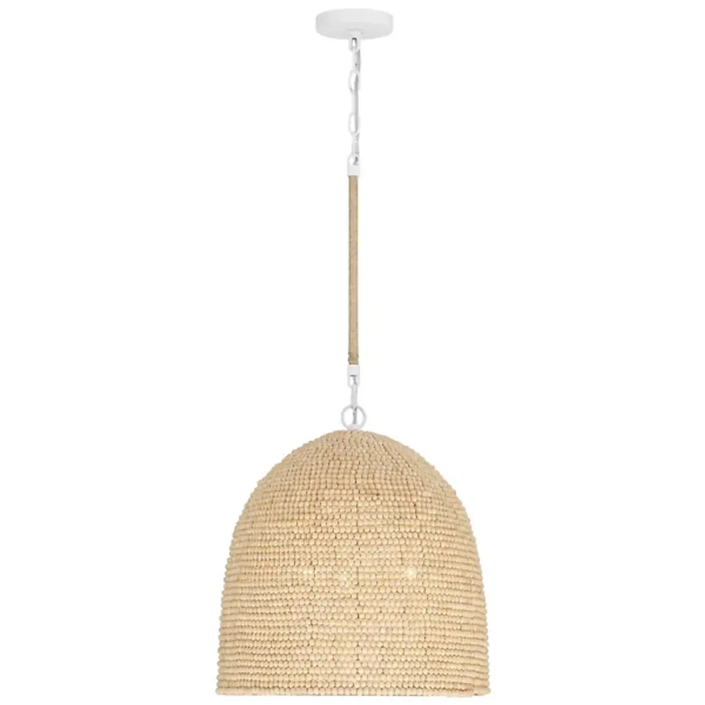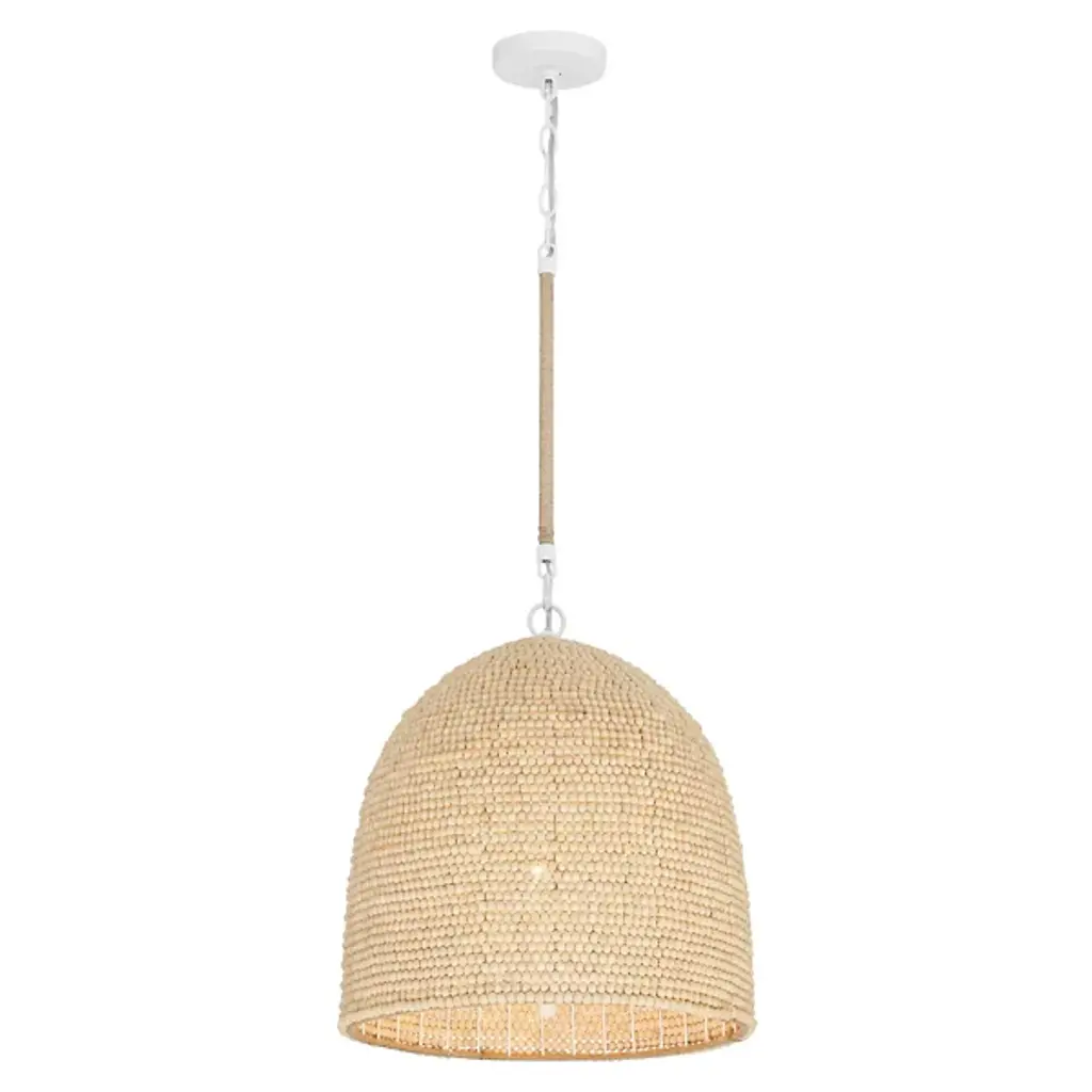 Immerse any home with a down-to-earth style by incorporating the Jasper Pendant from Crystorama. Meticulously hand-strung and tightly woven, the beads form a captivating and dramatic statement, whether suspended individually or in pairs. The natural wood beads infuse warmth and texture into the space, granting the fixture remarkable versatility across various interior settings. Perfectly suited for homes with coastal, modern, rustic, or casual themes, it effortlessly complements and enhances the overall aesthetic, providing an organic beauty and timeless charm that will impress.