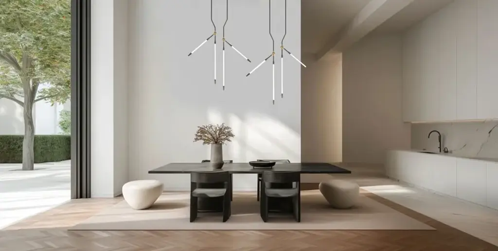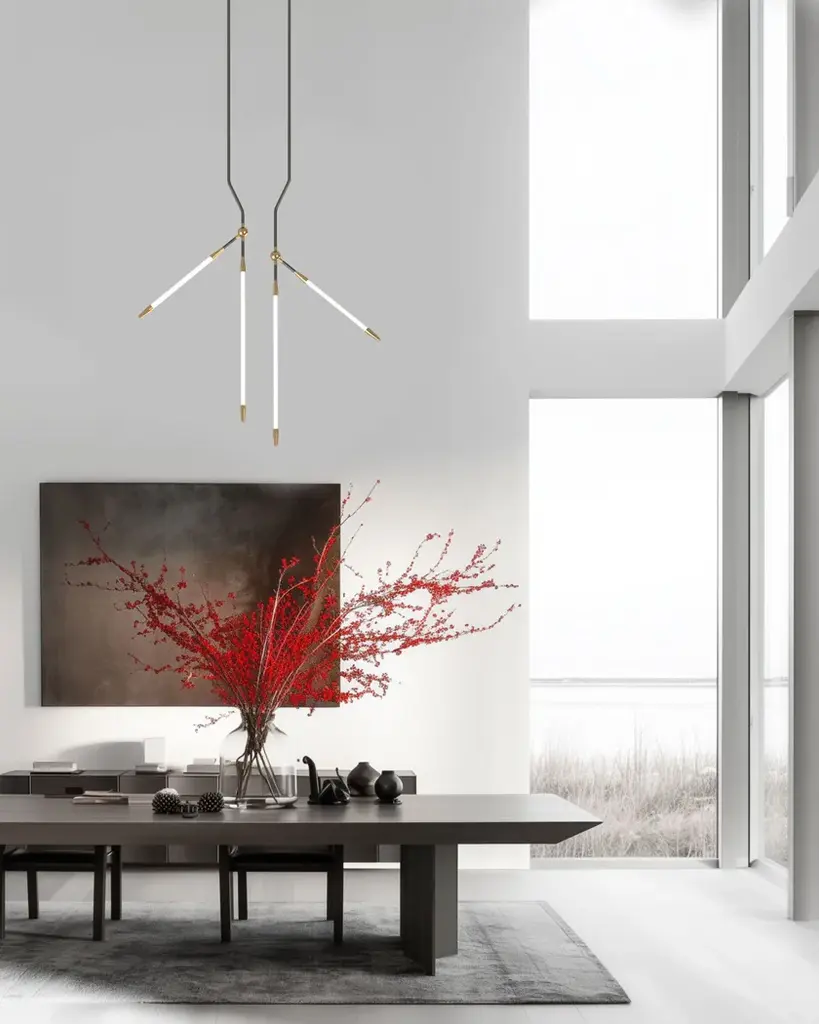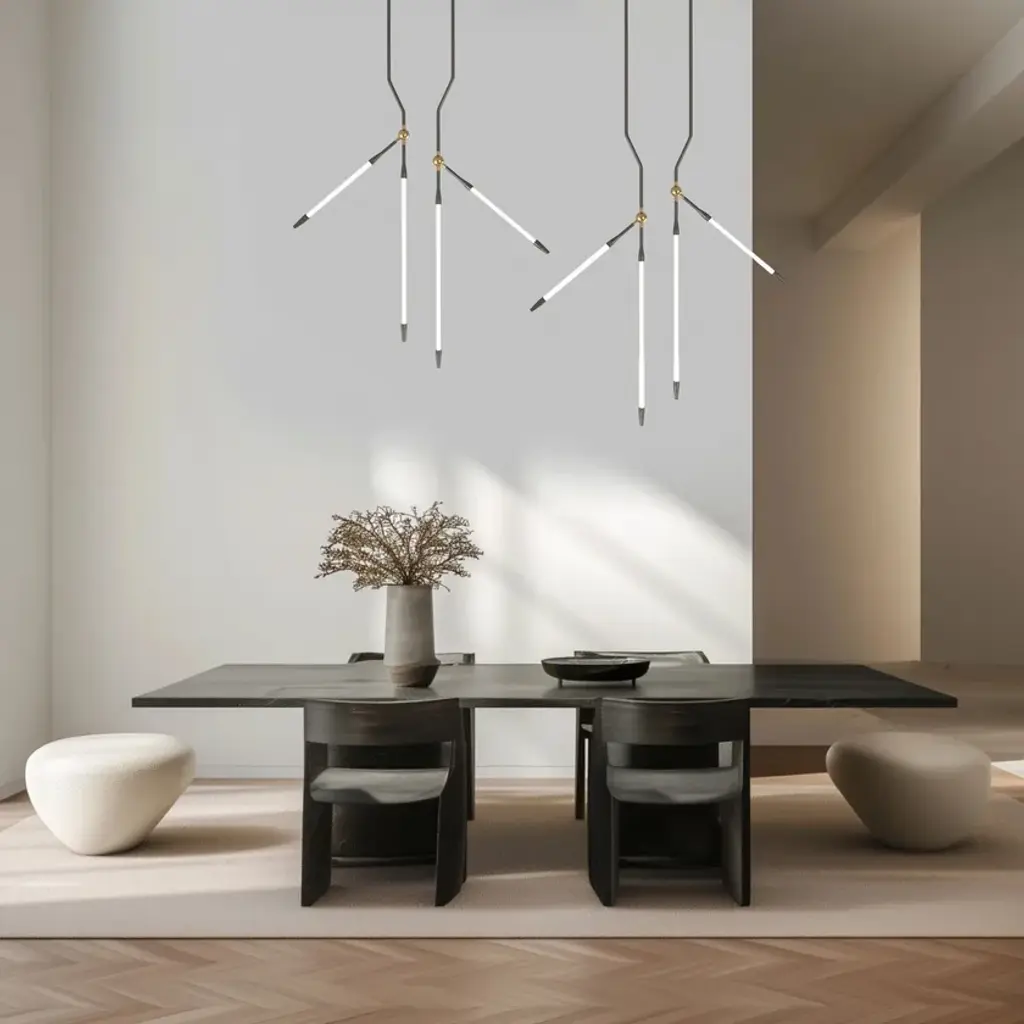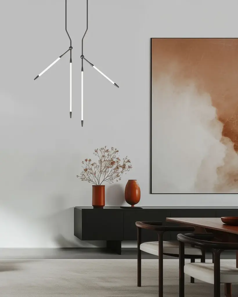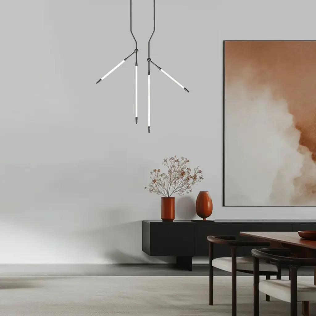 Javelin is a metal pendant lamp with an integrated LED and dimmer.Technical Specifications:240V IlluminationIntegrated LED, 15W, 1050 lumens (est.), color temperature 3000K, 90+ CRI, LED lifetime 50,000 hours (est.), dimming 0-10V, DALI dimming available upon request.120V IlluminationIntegrated LED, 17W, 1280 lumens (est.), color temperature 3000K, 90+ CRI, LED lifetime 50,000 hours (est.), dimming 120V - TRIAC.