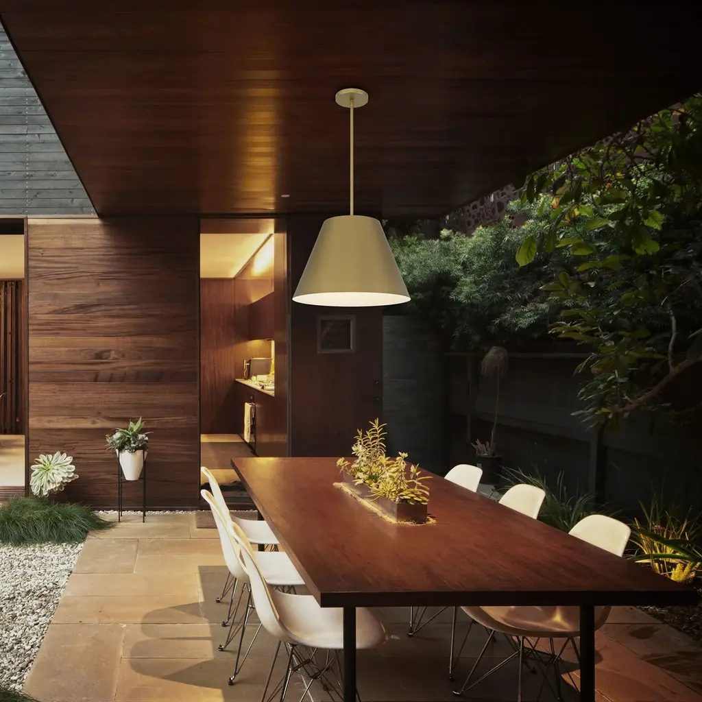 The Jaz LED Pendant features a sleek, tapered shade with concave opal glass diffuser designed for both indoor and outdoor spaces, thanks to its wet location rating. Its refined silhouette is available in 2 sizes and 2 finishes, effortlessly complementing any design aesthetic. With 5-CCT customizable lighting and dimming capabilities, it allows you to tailor the ambiance to any setting with ease.