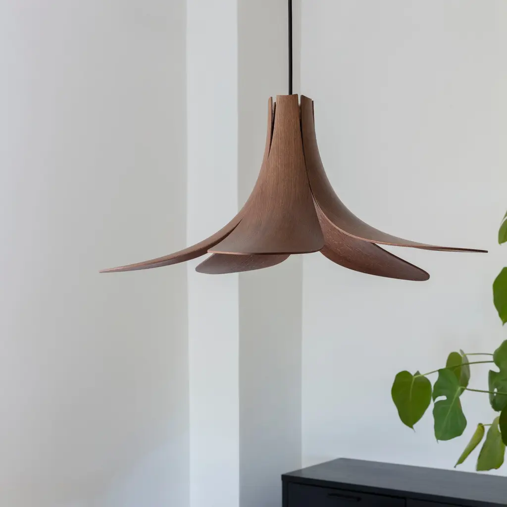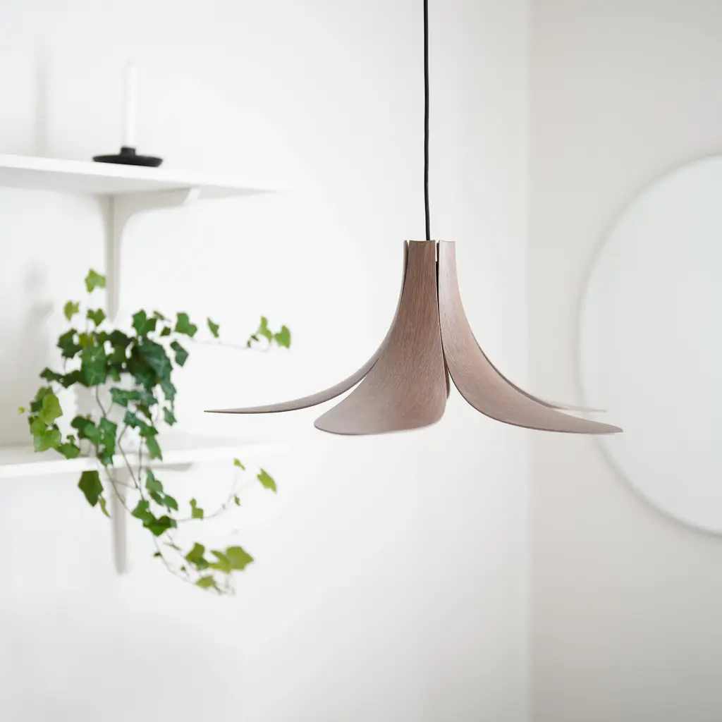 Design duo Magnus Nero and Ingemar Jönsson employ exclusive 3D veneer technology to devise Jazz, a pendant that resembles a classical gramophone horn, hence the name. In a choice of light or dark oak with either white or black fittings, the organic shape adds intrigue and vitality to the home with its warm LED illumination. Also suggested by a flourishing frangipani flower, Jazz brings a naturalistic Nordic coziness, especially above the dining table or wherever people might gather.