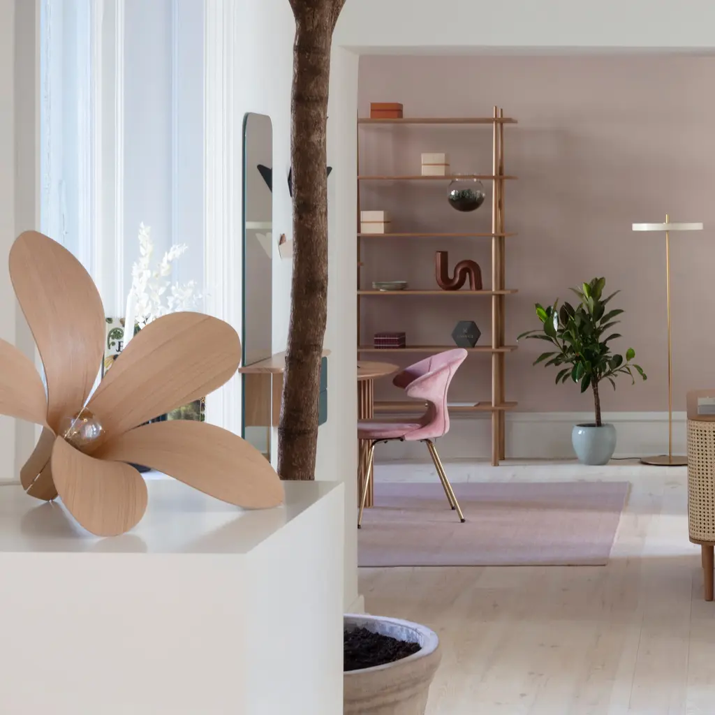 Design duo Magnus Nero and Ingemar Jönsson employ exclusive 3D veneer technology to devise Jazz, a pendant that resembles a classical gramophone horn, hence the name. In a choice of light or dark oak with either white or black fittings, the organic shape adds intrigue and vitality to the home with its warm LED illumination. Also suggested by a flourishing frangipani flower, Jazz brings a naturalistic Nordic coziness, especially above the dining table or wherever people might gather.
