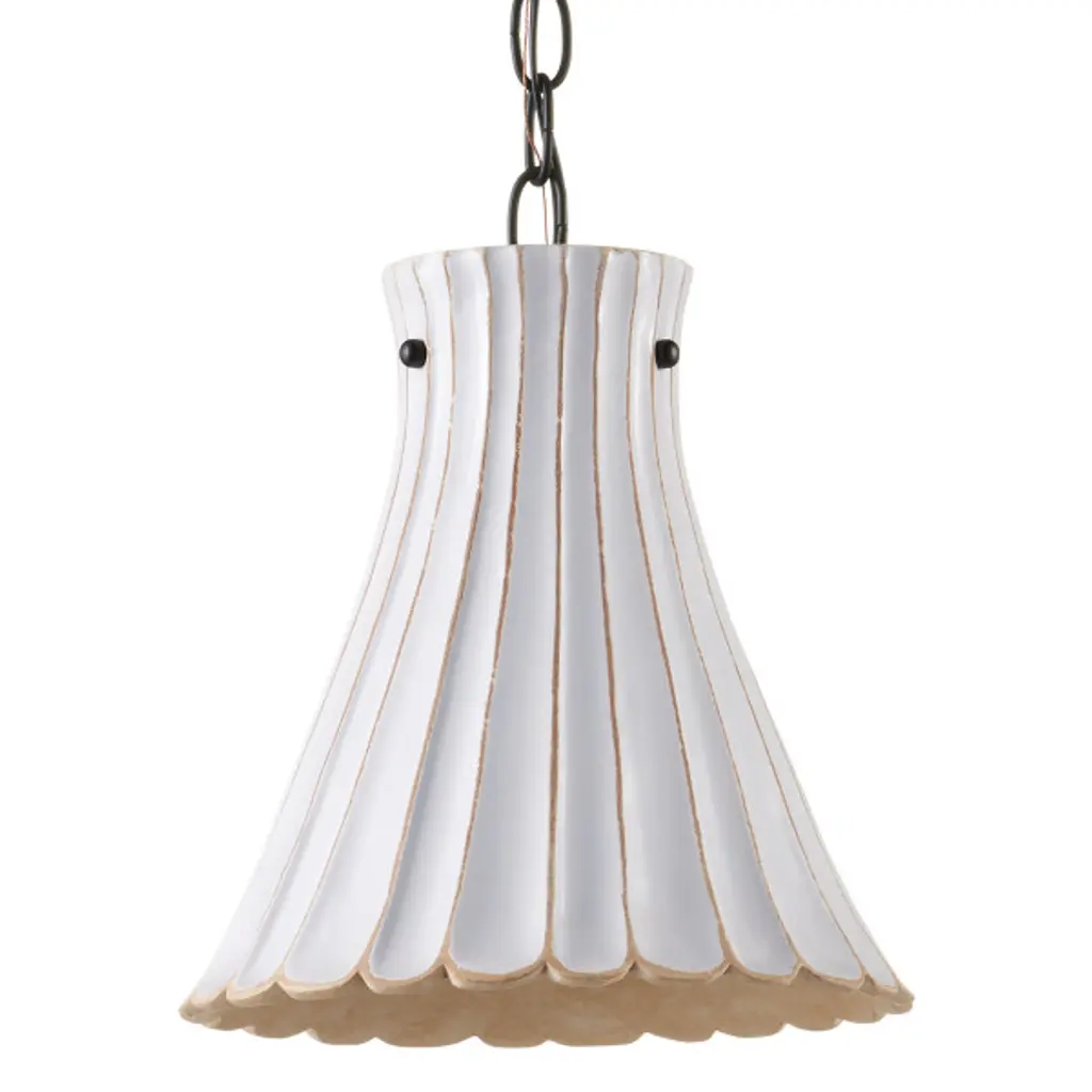 The Jazz Pendant features a fluted silhouette that culminates at the bottom in scallops for a retro vibe. Its design offers a simple modern look, making it perfect for clustering or hanging in rows.