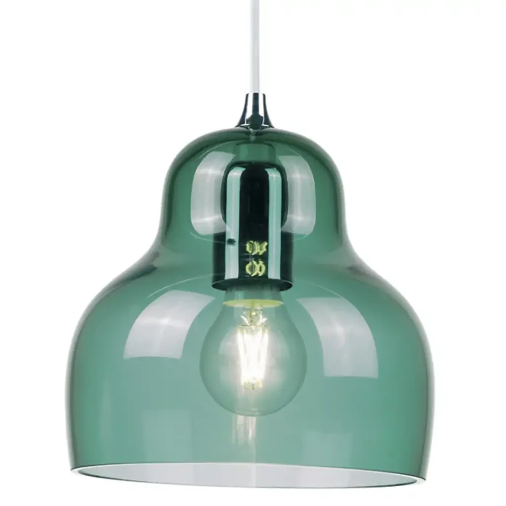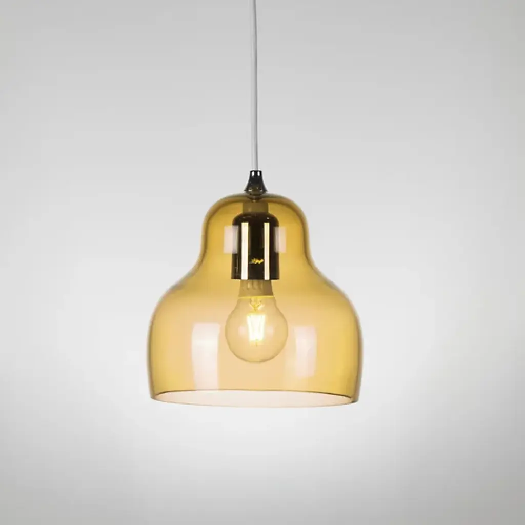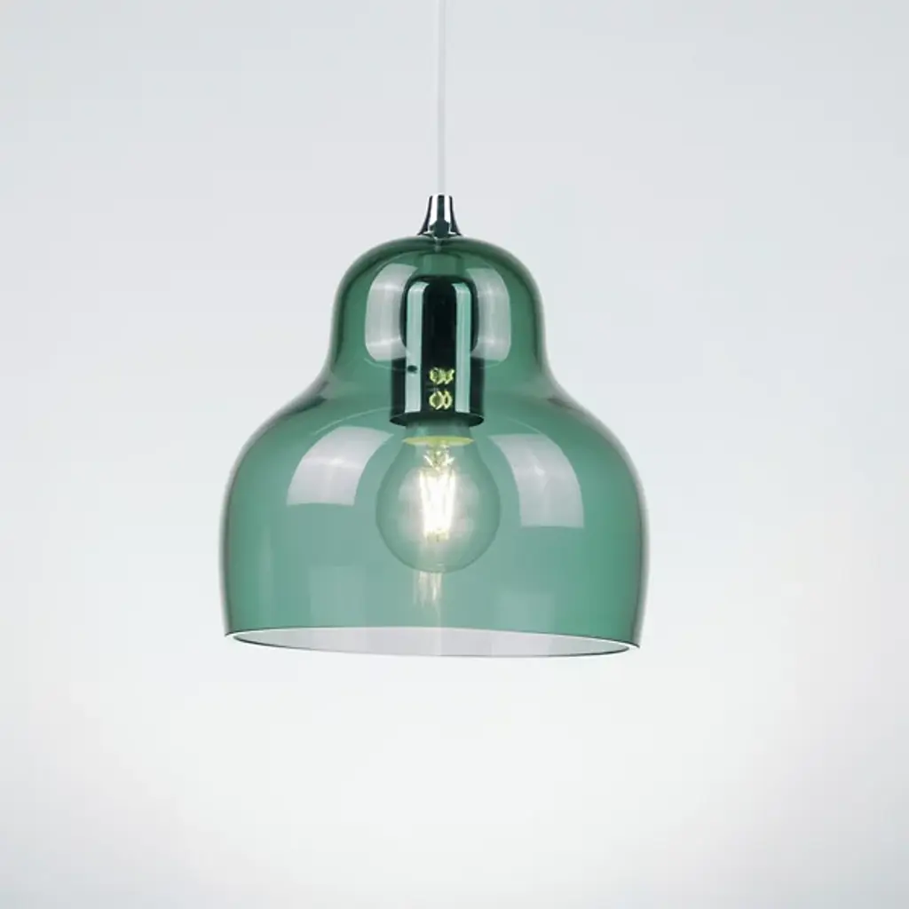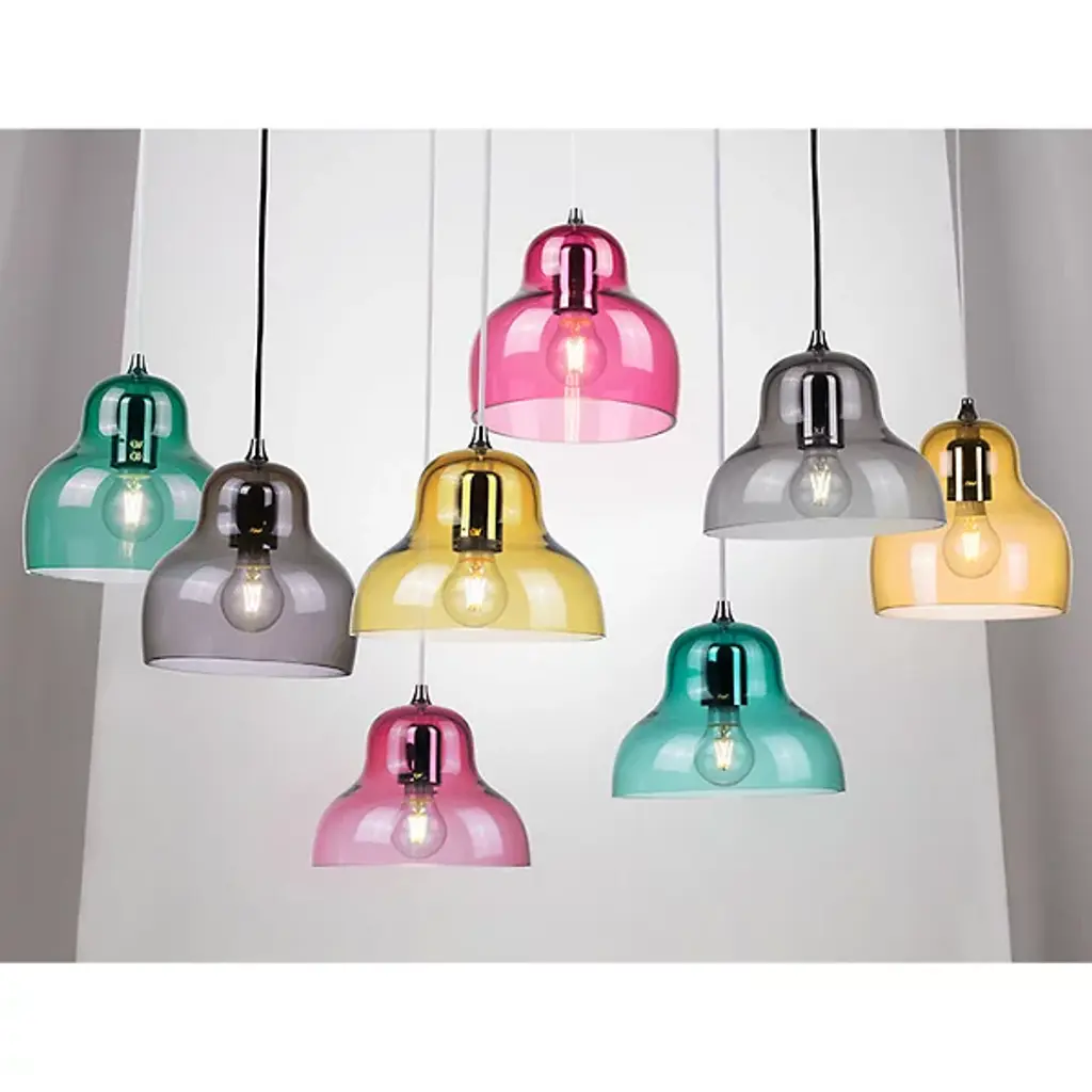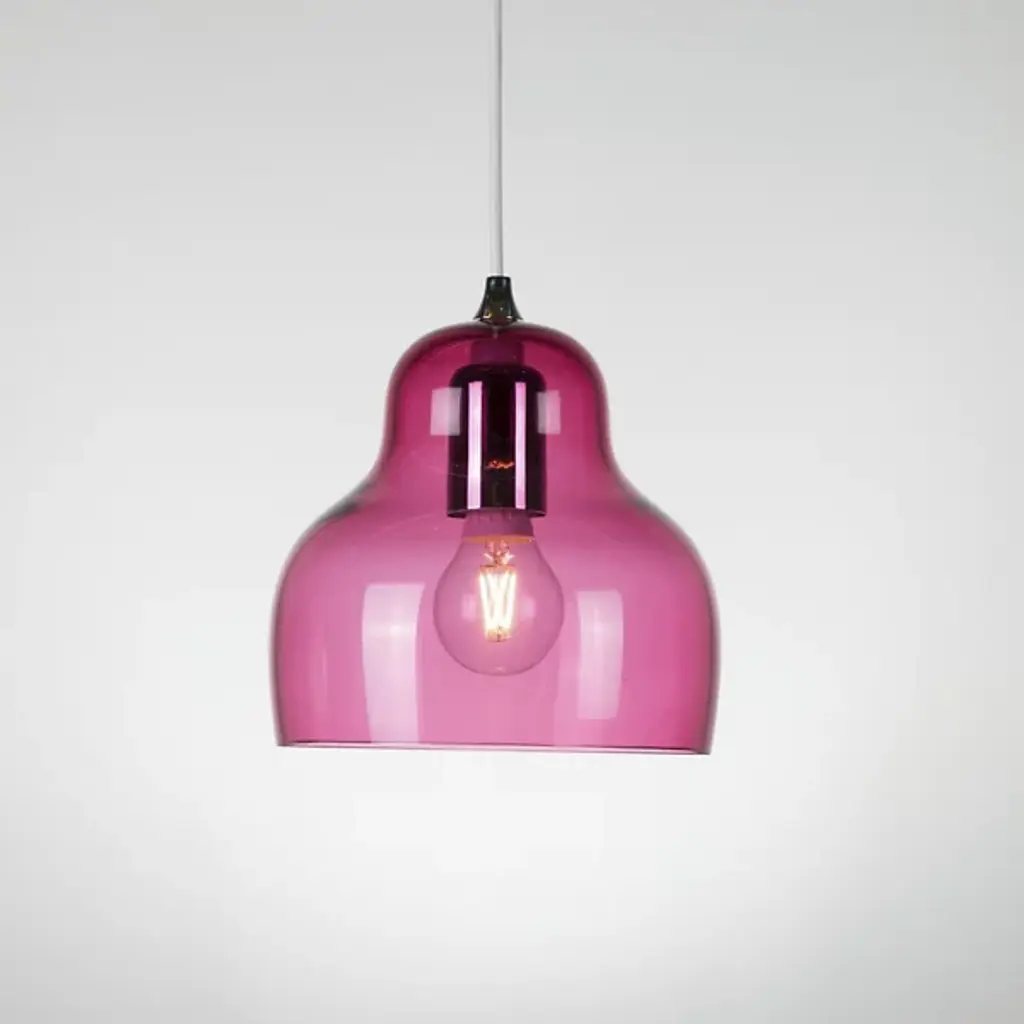 The Jelly Pendant from Innermost brings a sweet, simple style to inside spaces. A curving and customizable treat for the eyes crafted by Stone Designs, it descends from a subdued ceiling mount along a slender cable, ending in a downward-facing single socket set inside a transparent, tinted shade that flares out and down around it. The customizable design appears to suspend its lamping in a transparent jelly shade, while the unique, hand-blown production of the shade adds ample organic appeal to the simple structure, gentling direct brightness into a soft, appealing ambiance that extends around a medium-sized spread of downlight.
