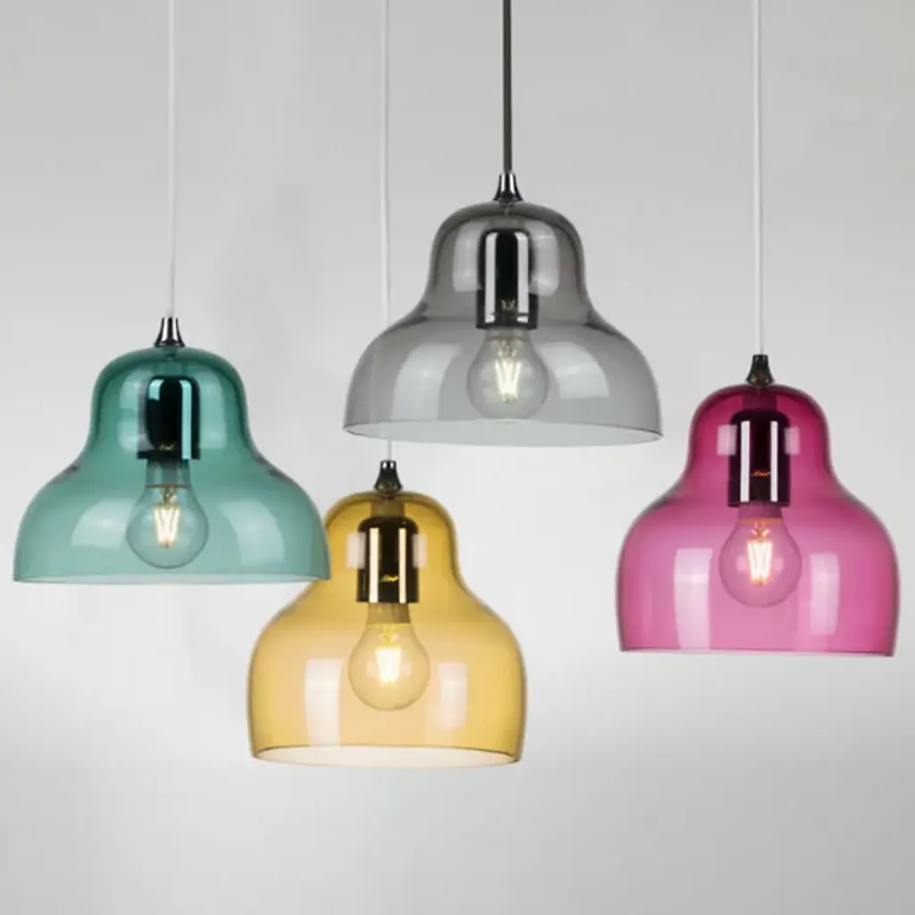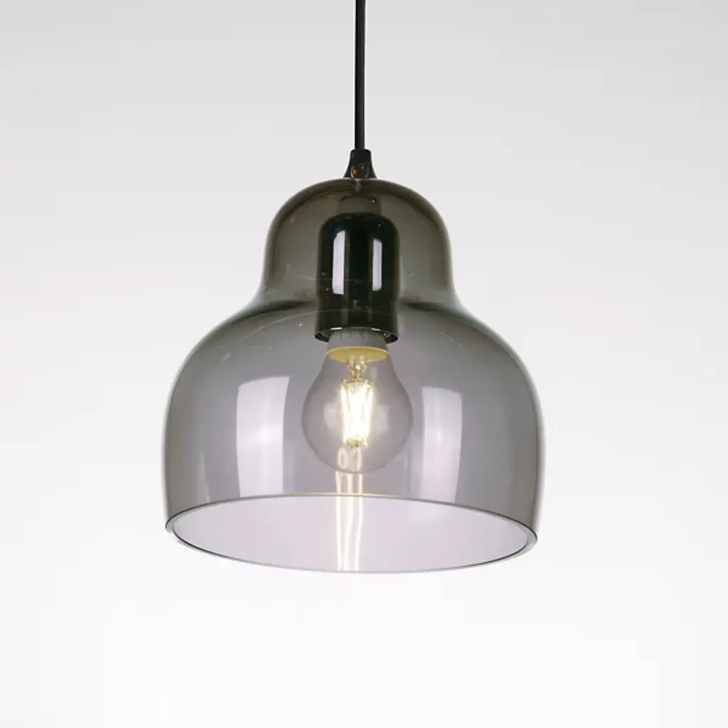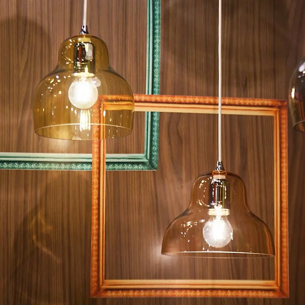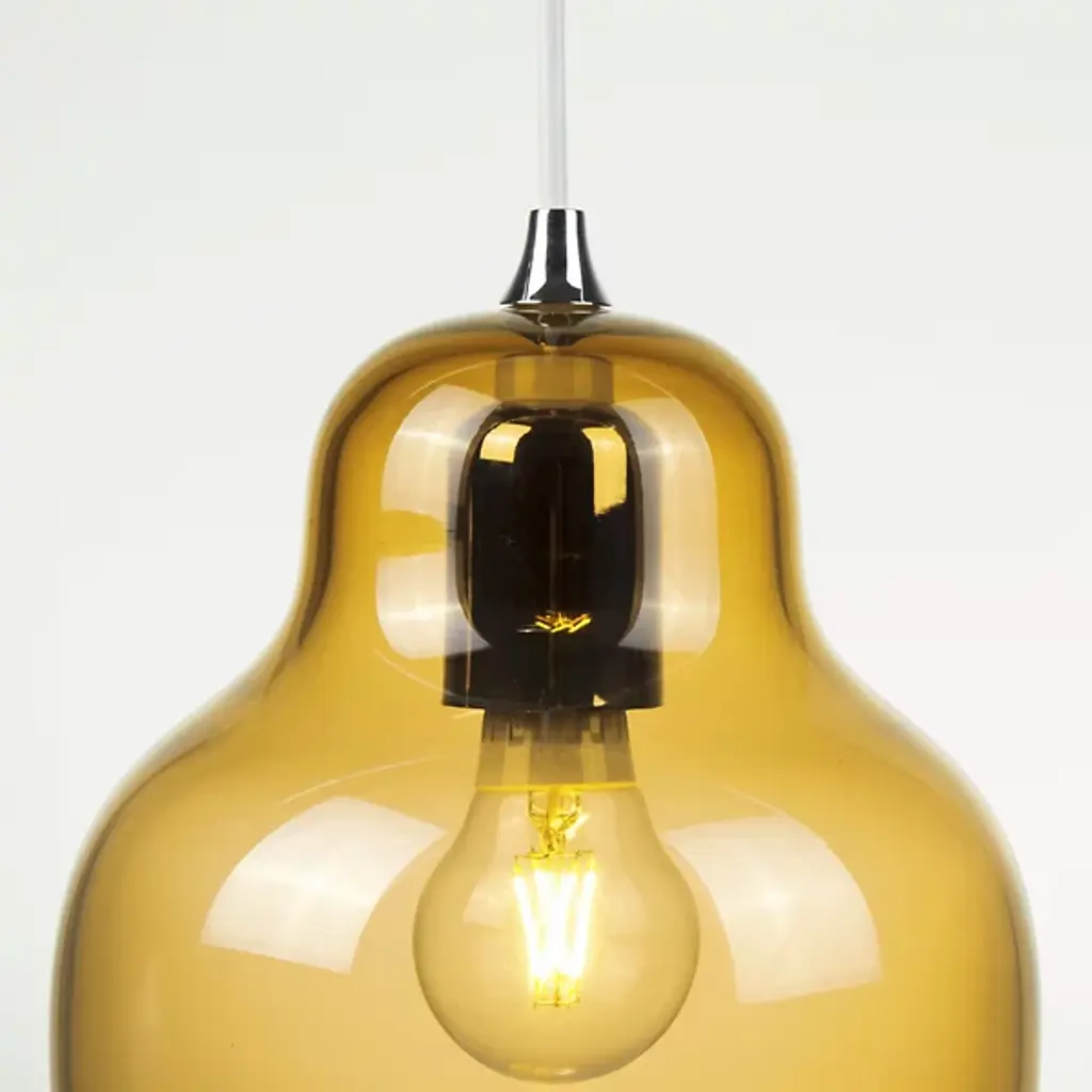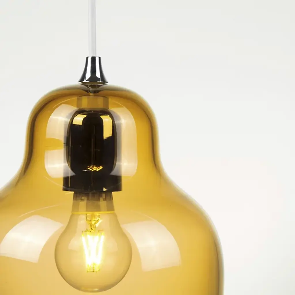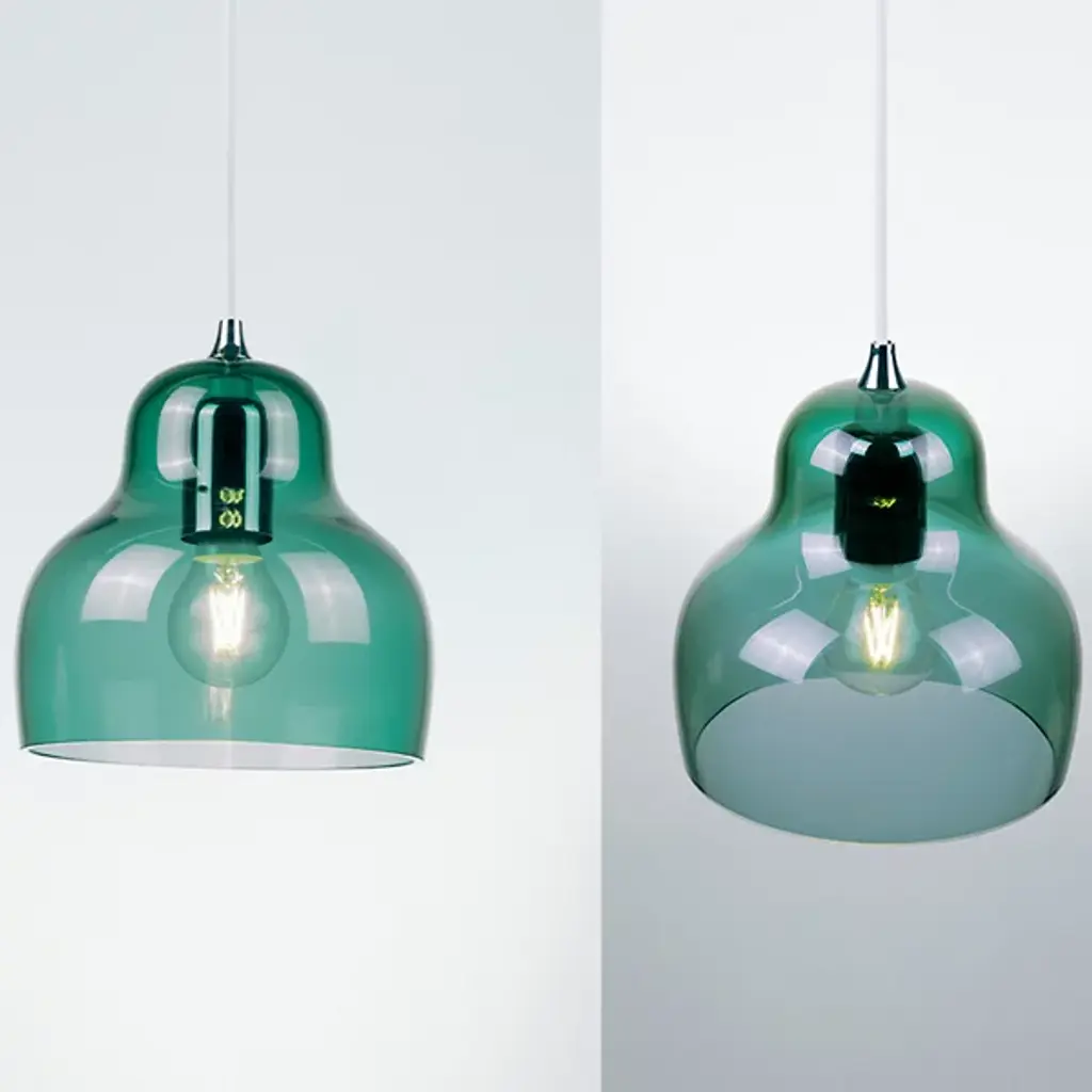 The Jelly Pendant from Innermost brings a sweet, simple style to inside spaces. A curving and customizable treat for the eyes crafted by Stone Designs, it descends from a subdued ceiling mount along a slender cable, ending in a downward-facing single socket set inside a transparent, tinted shade that flares out and down around it. The customizable design appears to suspend its lamping in a transparent jelly shade, while the unique, hand-blown production of the shade adds ample organic appeal to the simple structure, gentling direct brightness into a soft, appealing ambiance that extends around a medium-sized spread of downlight.