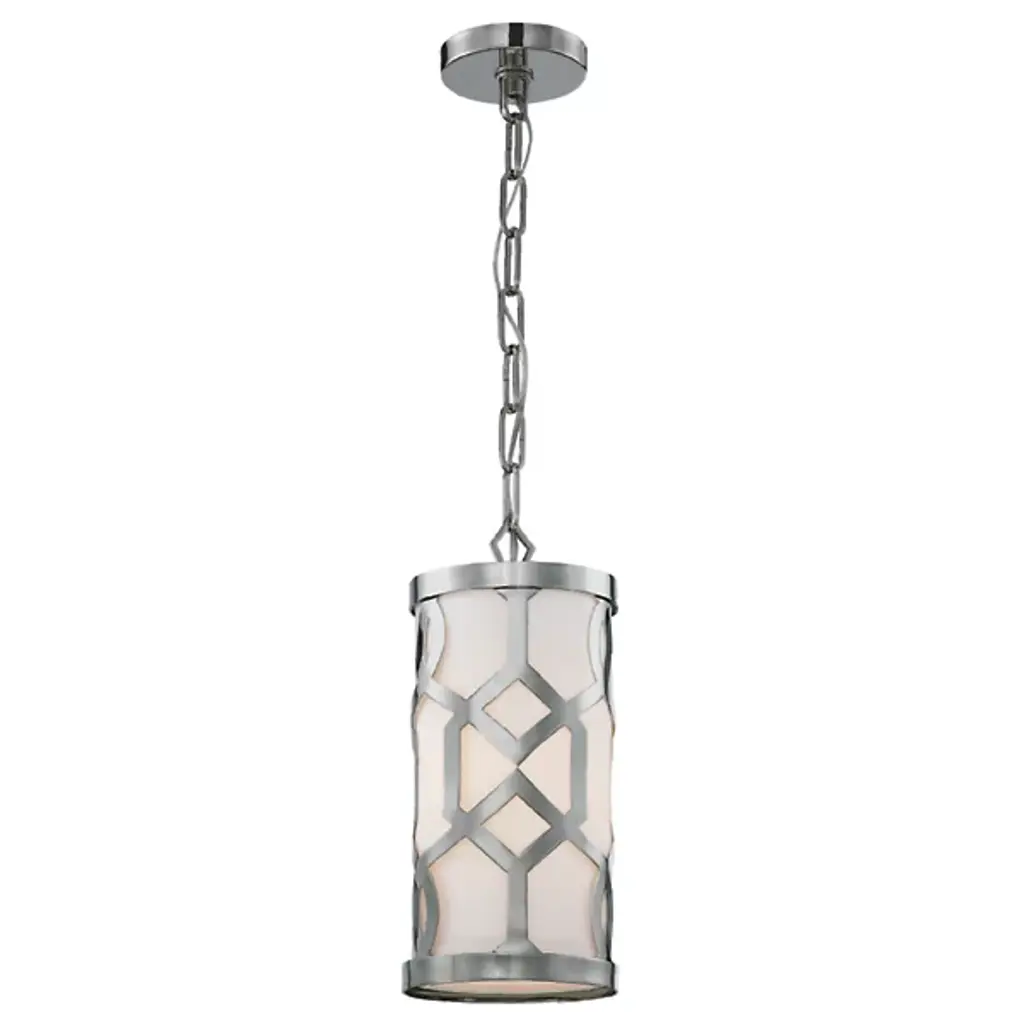 The Crystorama Jennings Mini Pendant from designer Libby Langdon features an interesting geometric pattern that has a graphic feel without overpowering the space. The linen shade adds a little texture to the piece, while the bottom glass diffuser scatters the illumination throughout the space just right.
