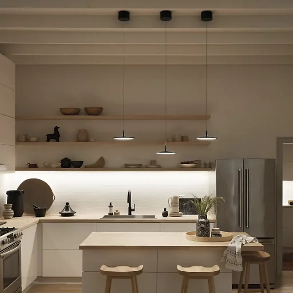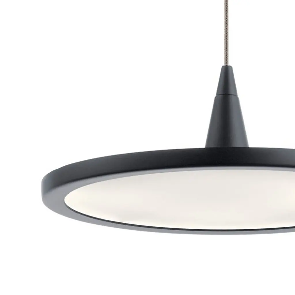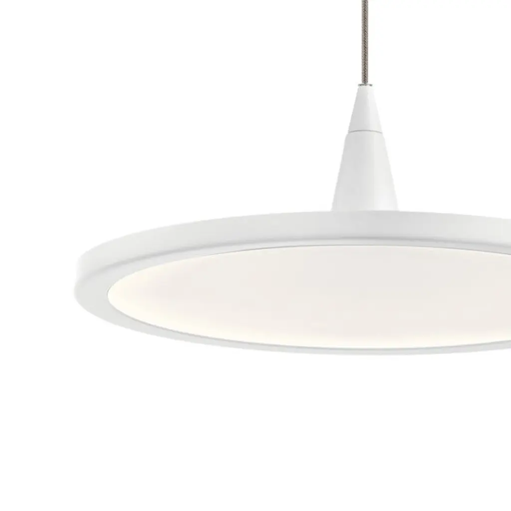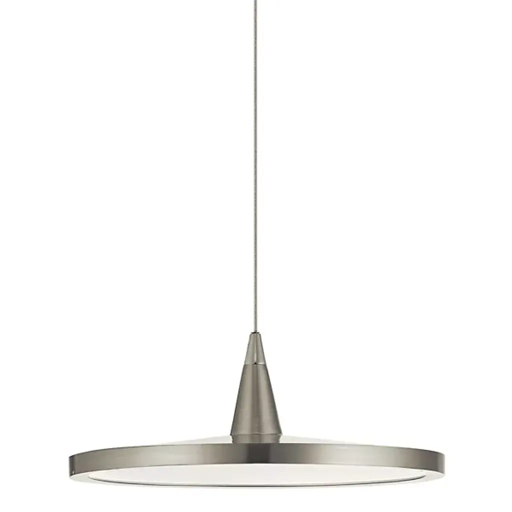 Make a modern statement with the Jeno LED Mini Pendant by Elan Lighting. Constructed from sleek steel, this highly contemporary fixture presents a slender disc-shaped shade containing an integrated LED light source behind a white acrylic diffuser. A robust cylindrical canopy offers a visual anchor, while a slender cable effortlessly suspends the disc for a weightless aesthetic. This streamlined fixture modernizes a space when placed alone or suspended in a row of multiples.
