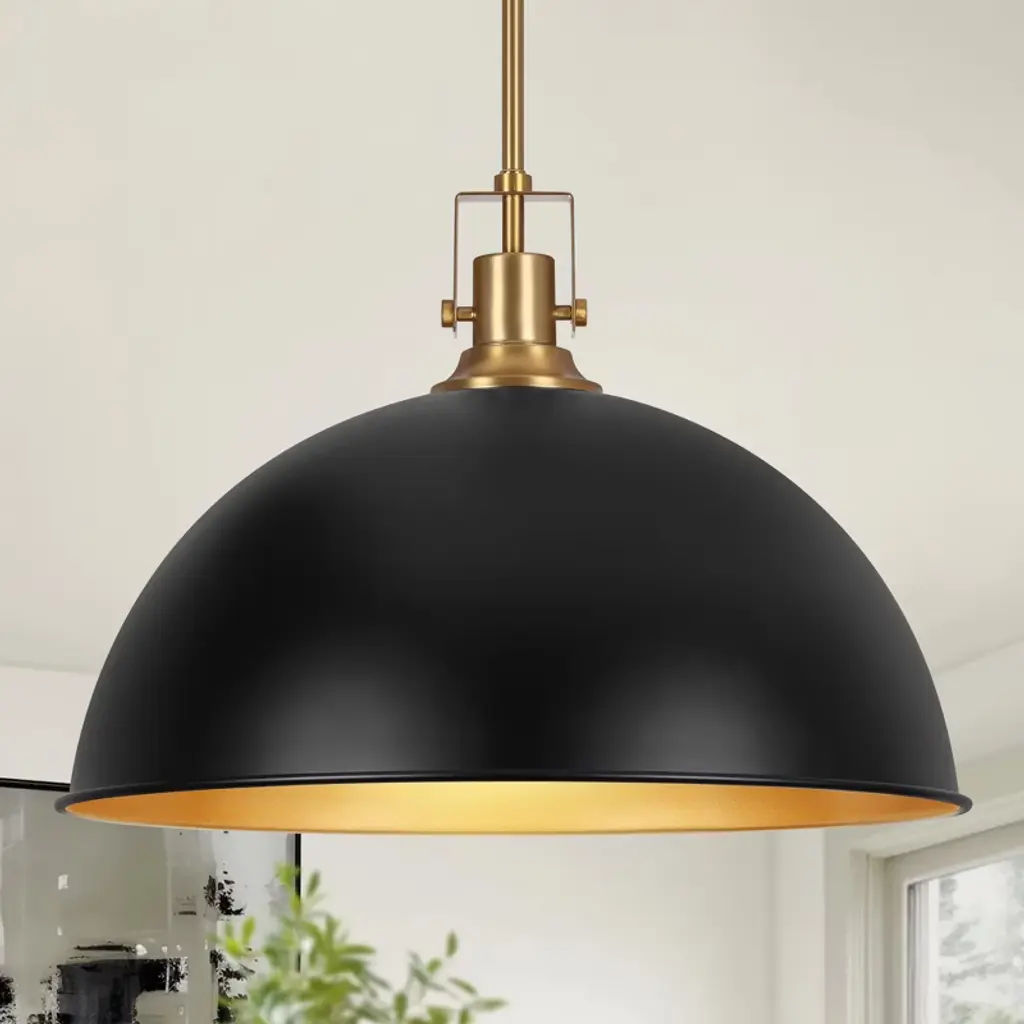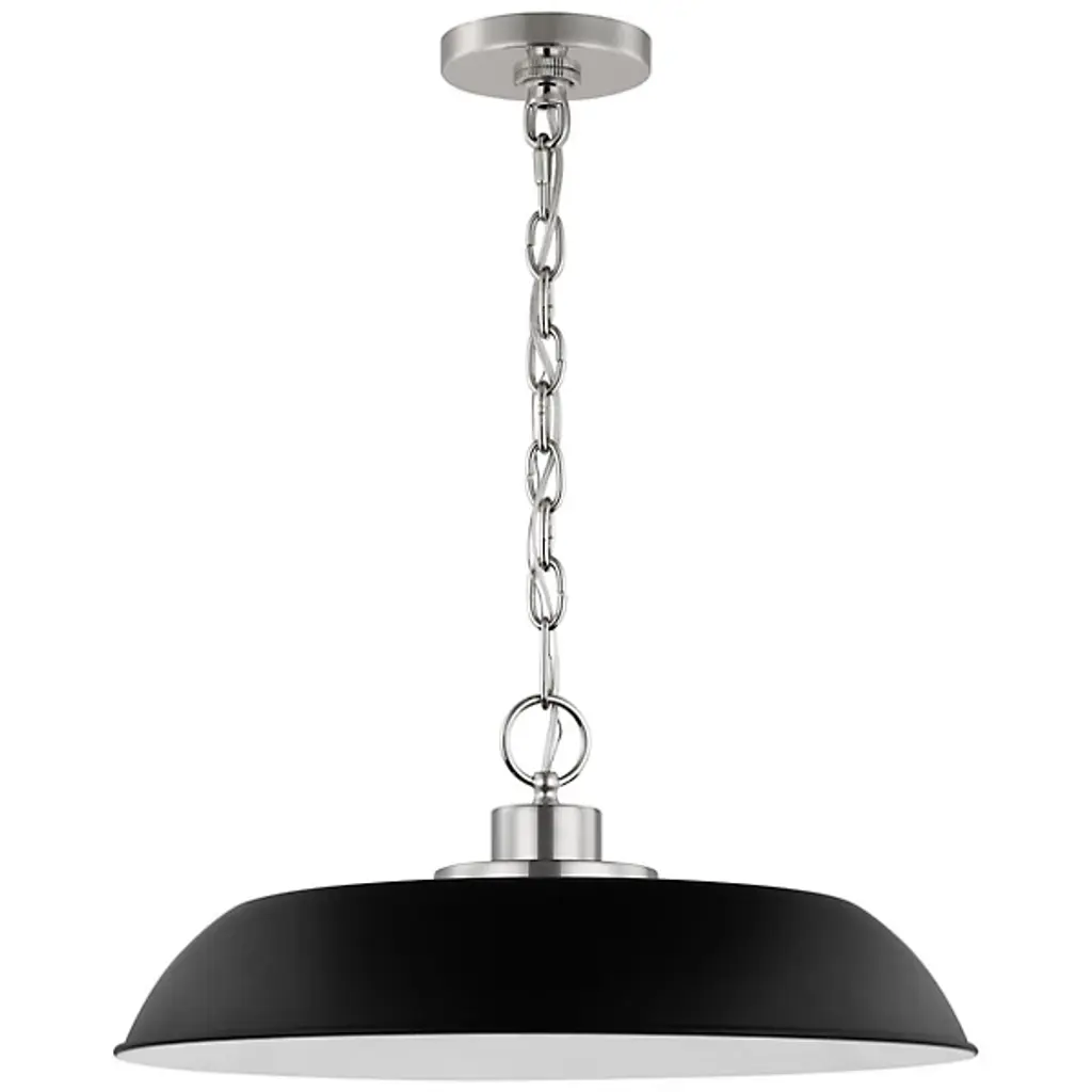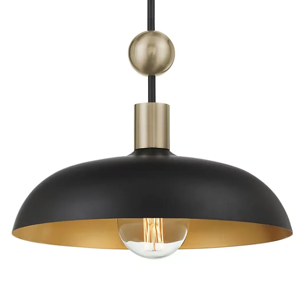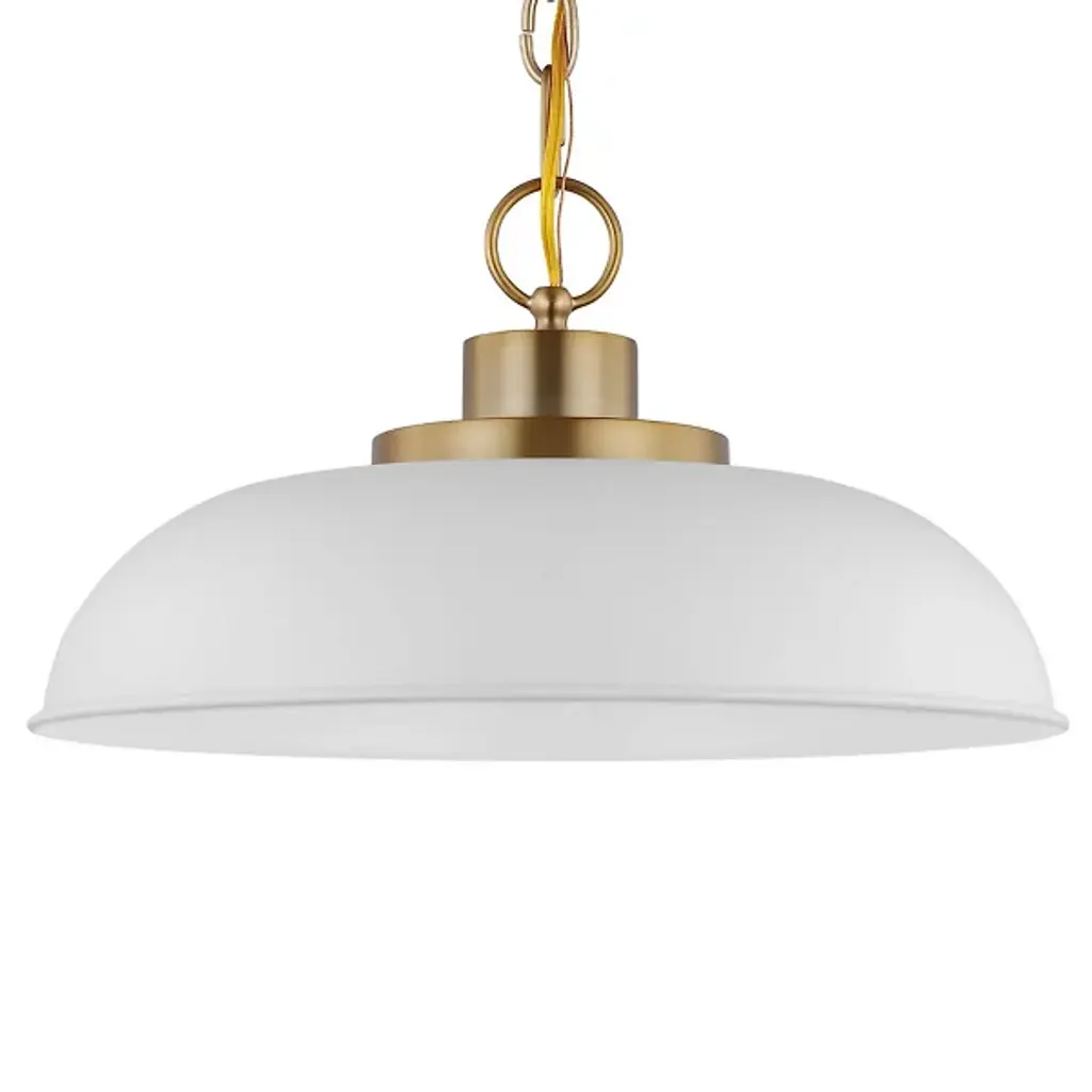A chic addition to the home's modern décor. The Jet Pendant from Alder & Ore makes its presence felt at any time of day. It cascades down with an elegant chain-link underscored by a rich metallic finish. Stepped metal shapes atop the shade define the pendant's dressy 2-toned look. The metal shade spreads out in a deep shape that reduces glare from the sides. The inside of the shade is painted white to create a pleasantly diffused visual from below. The singular bulb glazes the inside of the shade a golden hue as it fans out a cozy down glow.