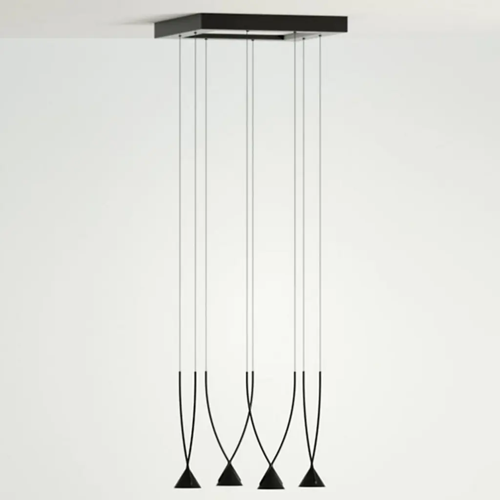 Capturing the form and sophistication of a beautifully cut Jewel is the AXO Light Jewel Square Multi Light LED Pendant, designed by Yonoh Studio as a piece that could “transmit emotions with light.” Gently sweeping double-crossed shapes produced by recycled glass fibers and nylon stems suspend neatly with slim cables and a slim-profiled square canopy. Nestled between the crossing segments is an aluminum cone shade that creates a geometric silhouette. A chorus of pleasing LED light flows elegantly from the shades for an overall ambient glow.