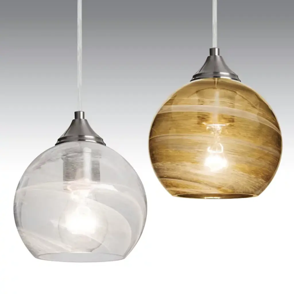 A celestial-like aura of opulence. The Jilly Mini Pendant by Besa Lighting inspires and captivates onlookers with its impeccable glass craftsmanship and unique vapor-style patterning that comes in your choice of finishes. When this pendant is turned on, a dazzling play of light emits to create a mesmerizing effect in addition to an enhanced level of visual clarity for a living room or dining space.