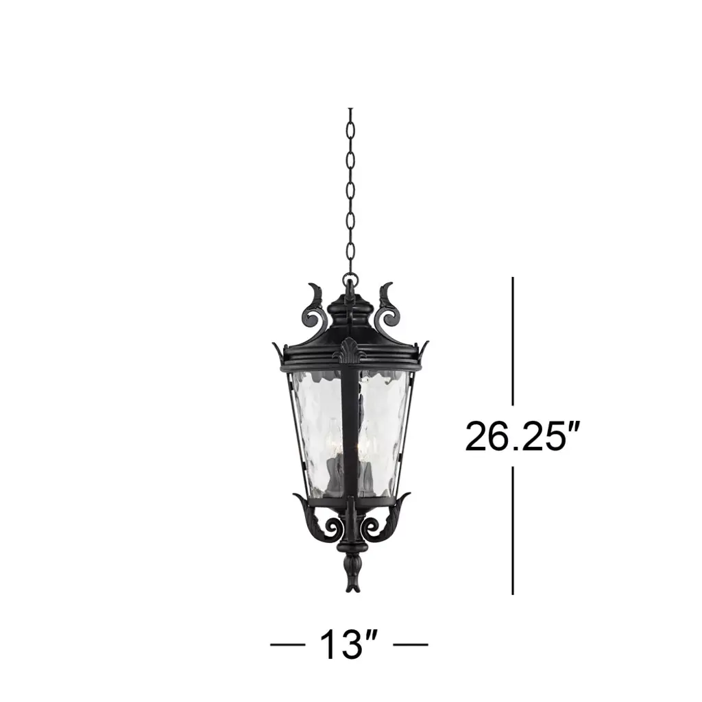 John Timberland Casa Marseille Rustic Outdoor Hanging Light Black Scroll 26 1/4" Clear Water Glass Damp Rated For Post Exterior Barn Deck House Porch